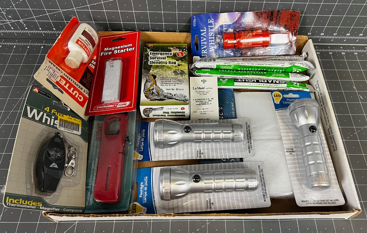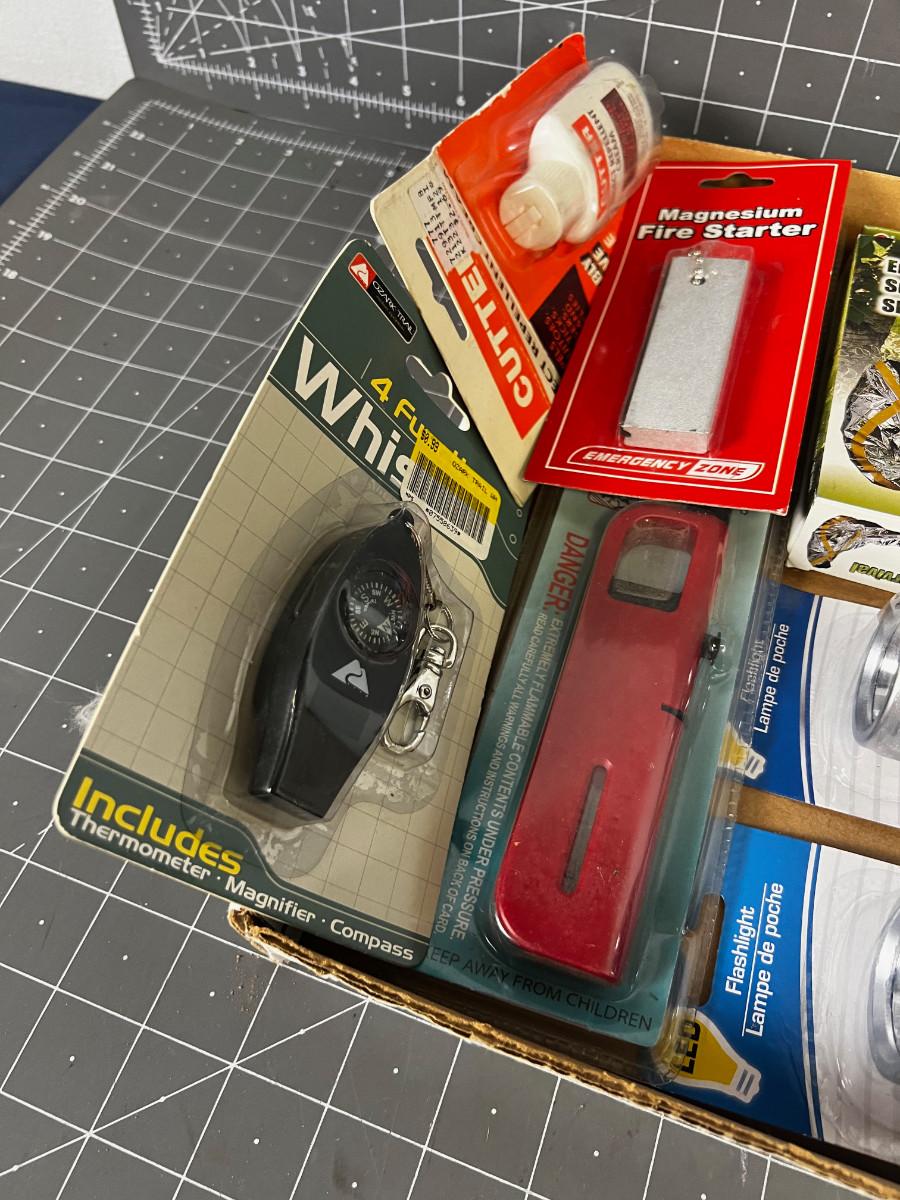 Emergency Items: Whistle, Blanket, Flashlight, Fire Starter