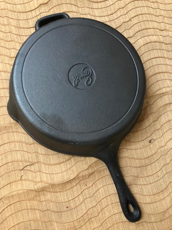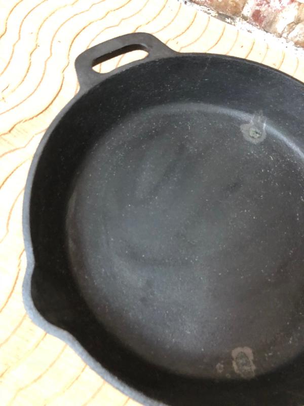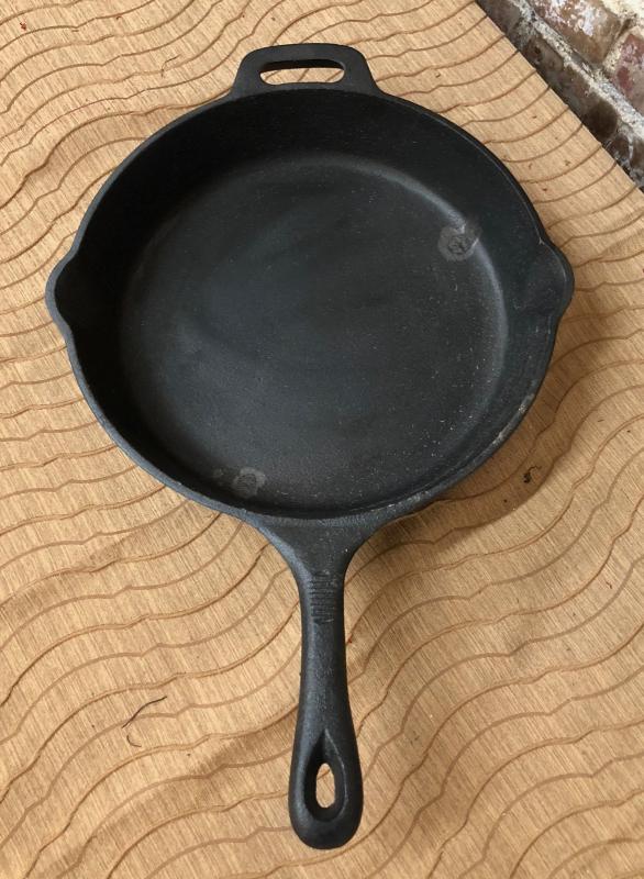 Here is a 12-inch cast iron skillet from celebrity chef Emeril Lagasse...New condition...Pre-seasoned cooking surface...helper handle and pouring spouts...a couple of spots from storage...