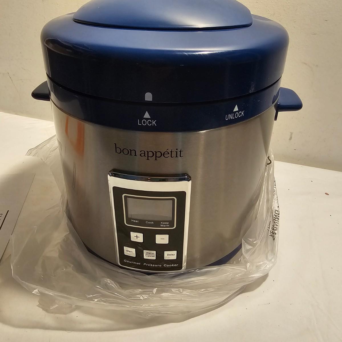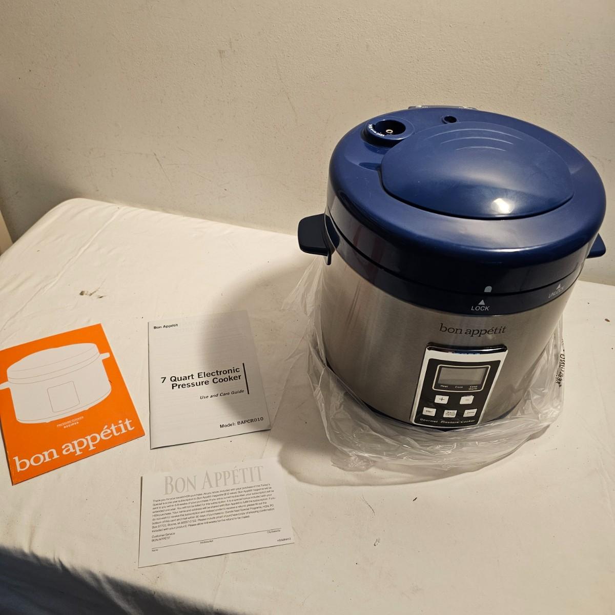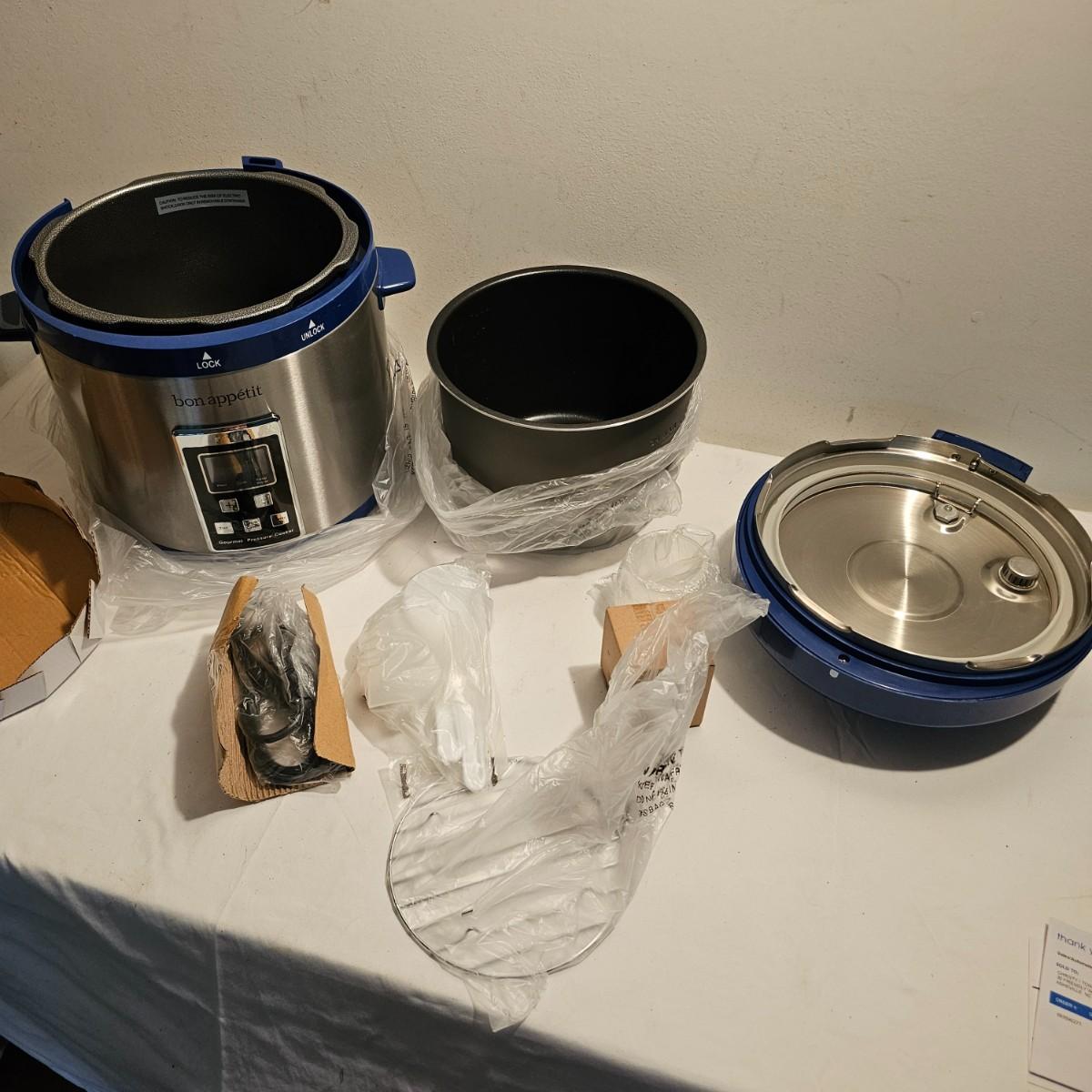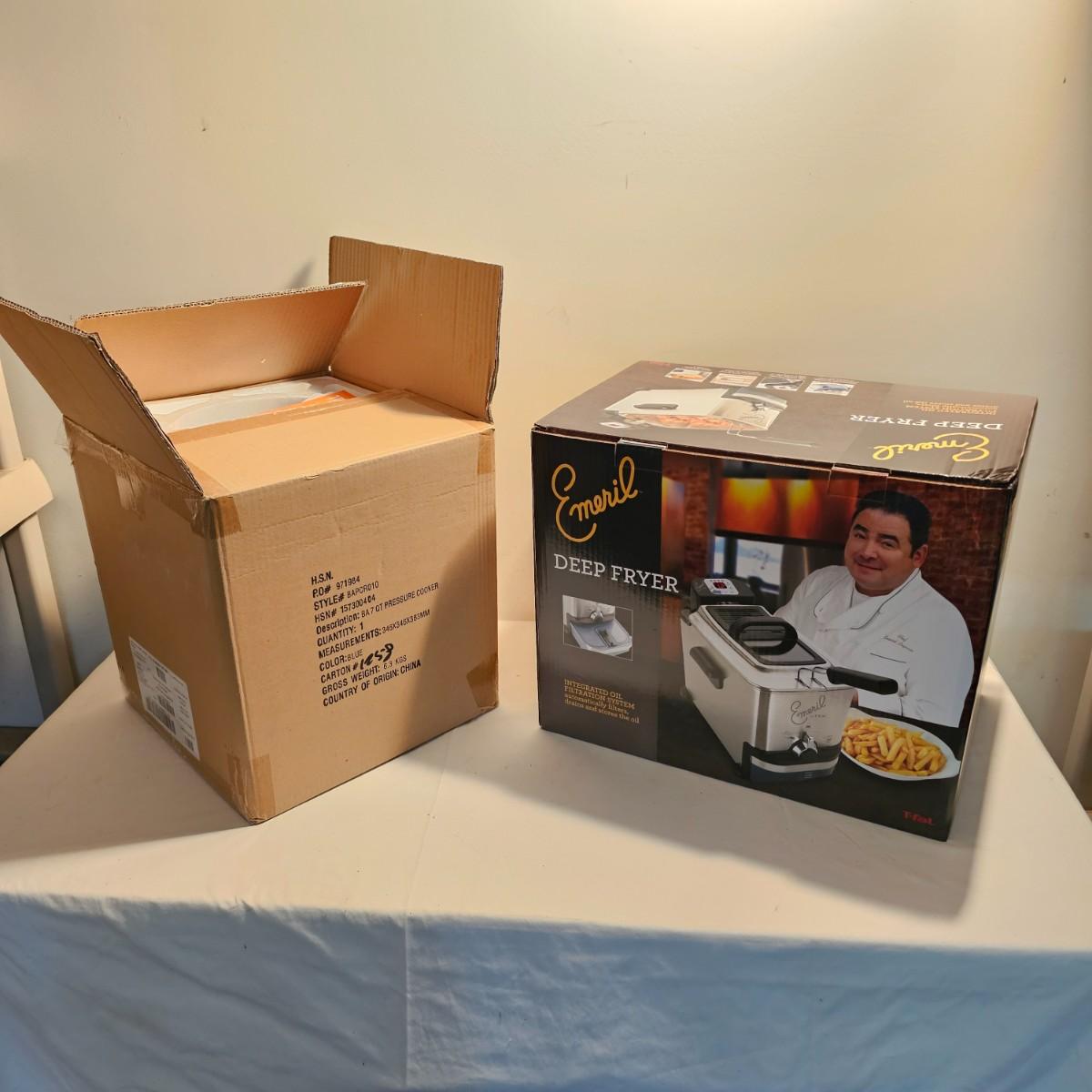 Both items new in box. Emeril deep fryer with basket, utensil and safety lid. Bon Appetit 7qt pressure cooker has small grill, cup, spoons, more. Both items powered on when plugged in. See photos for details. Shipping available.