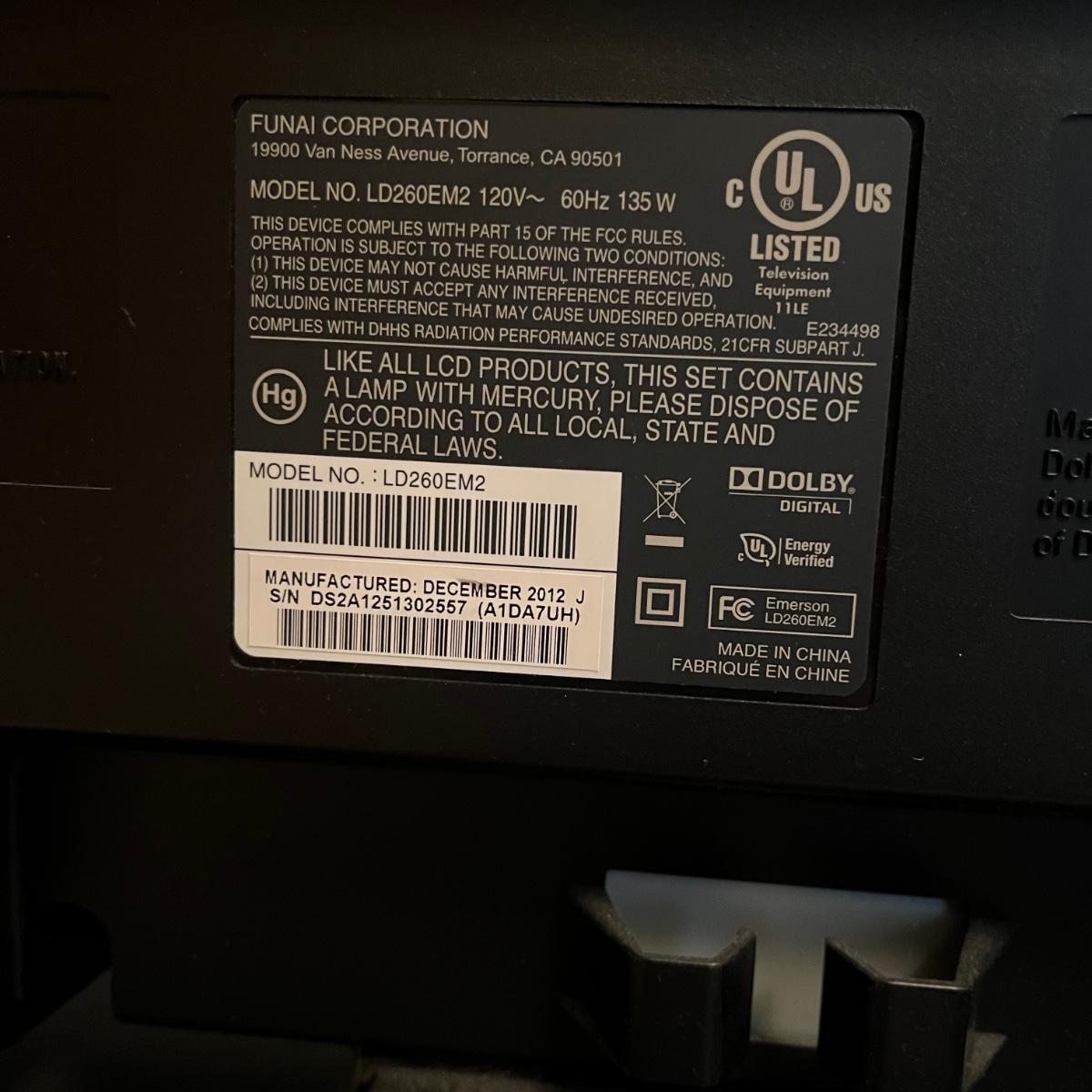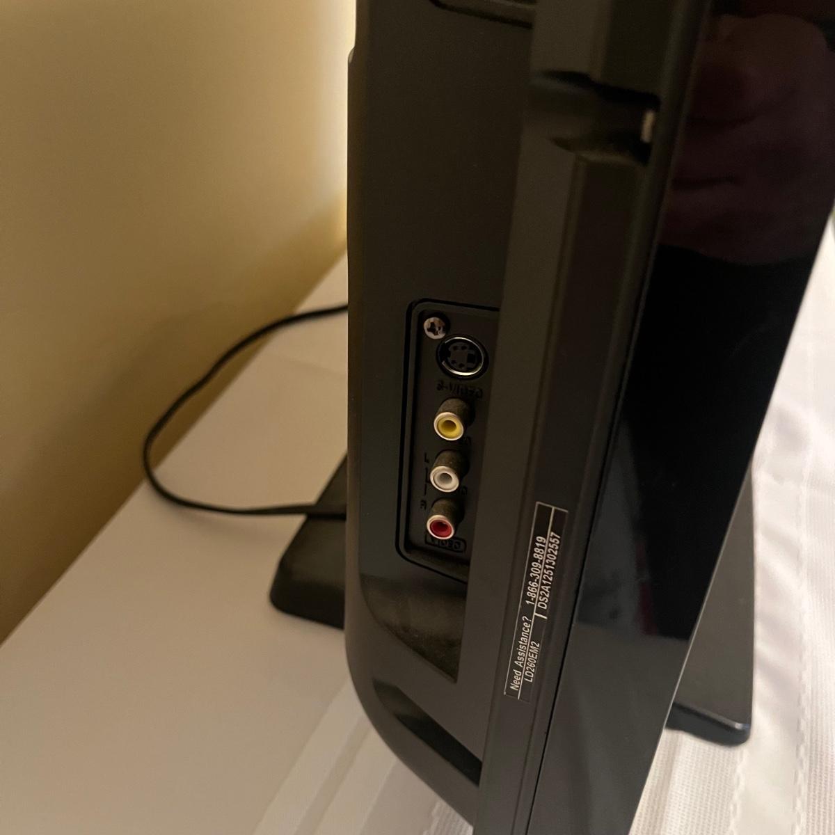 Lot includes an Emerson 26” TV with Built in DVD player. TV and DVD player powered on when plugged in. No remote is included.