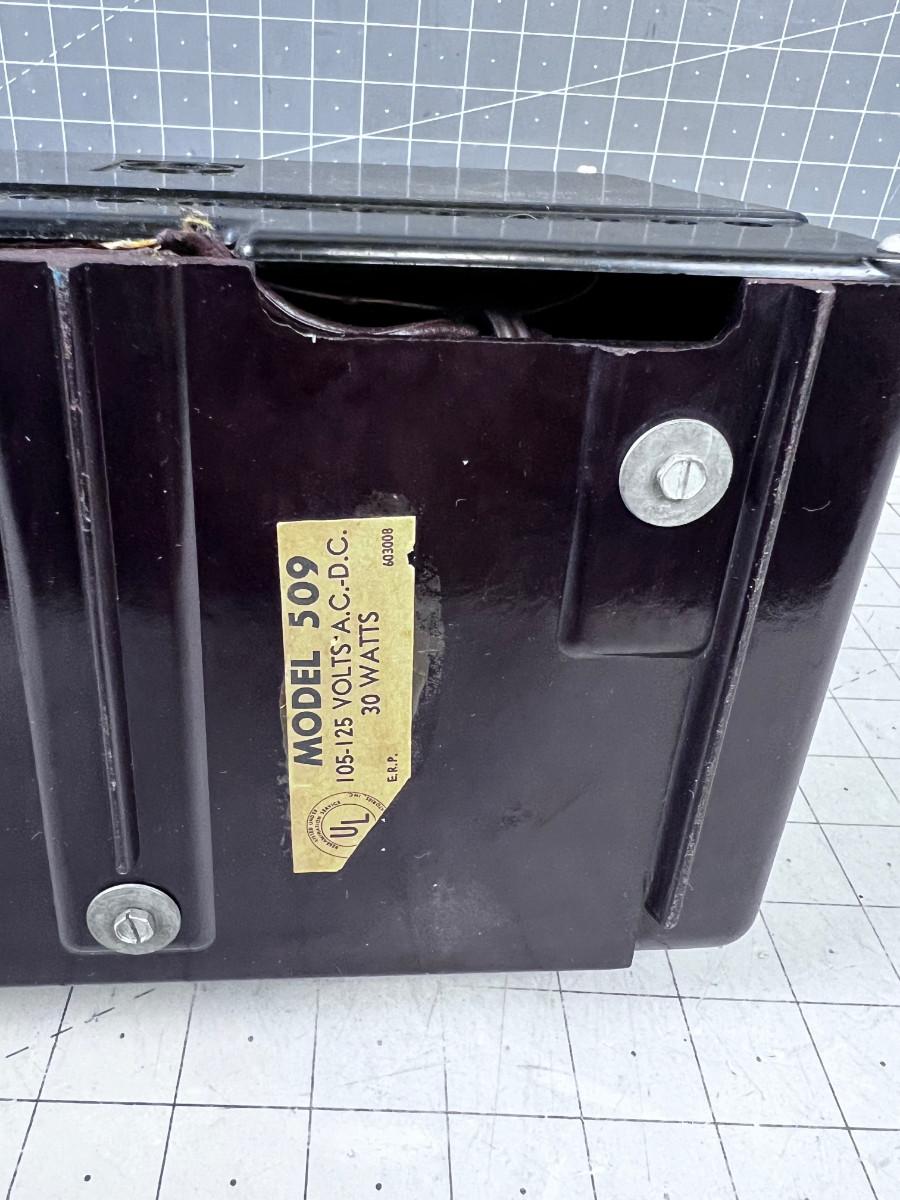 WHOA! on the Radio! Cord is Missing! Thus it does not work. Missing a Knob TOO! Measures 10 X 5 x 7"