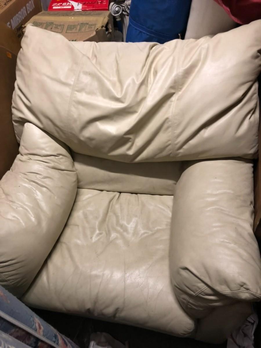 Emerson Leather arm chair in ivory. 3’ w x 3’d Super comfy and durable. See matching sofa item #CH003