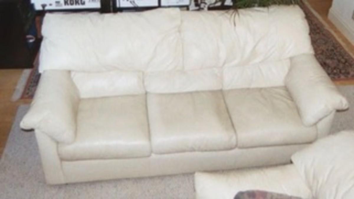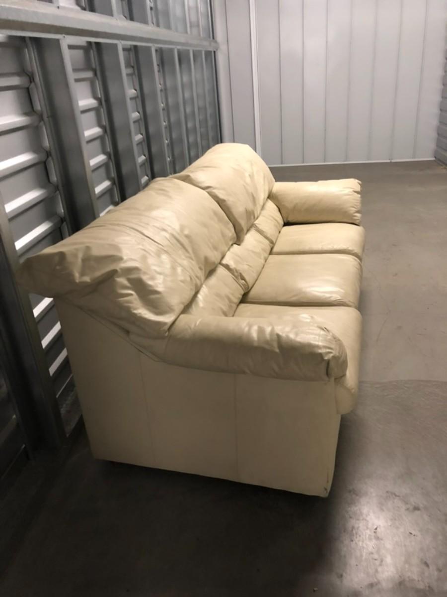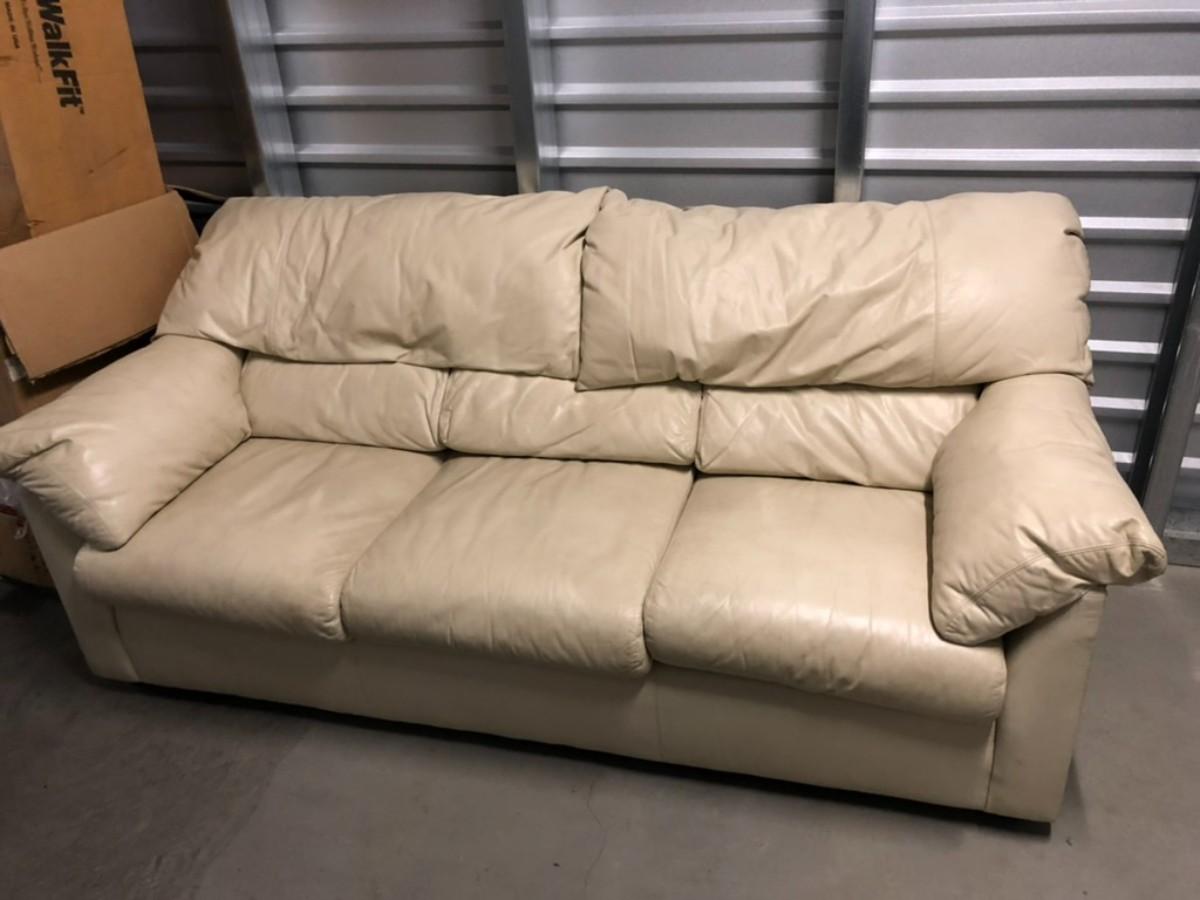 Emerson Leather Sofa in ivory. Matches chair for sale. (#CH002) Super comfortable and durable.
