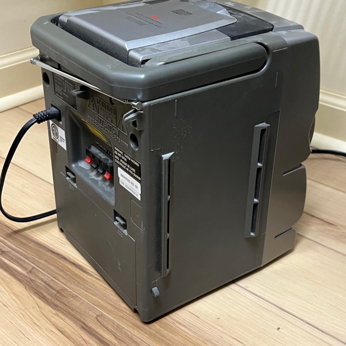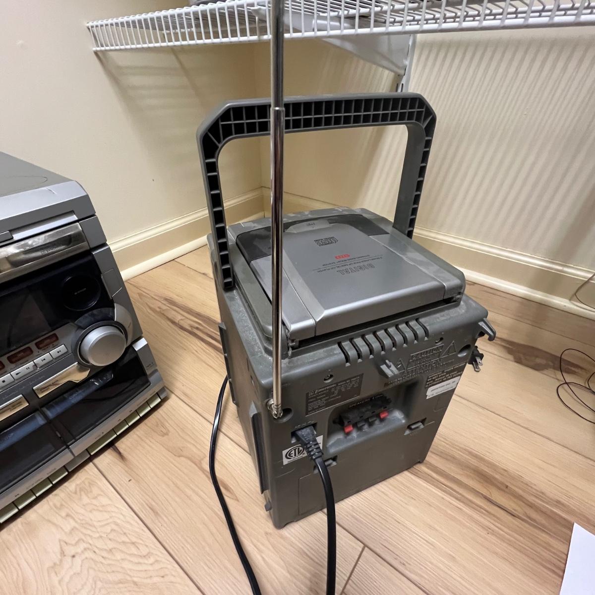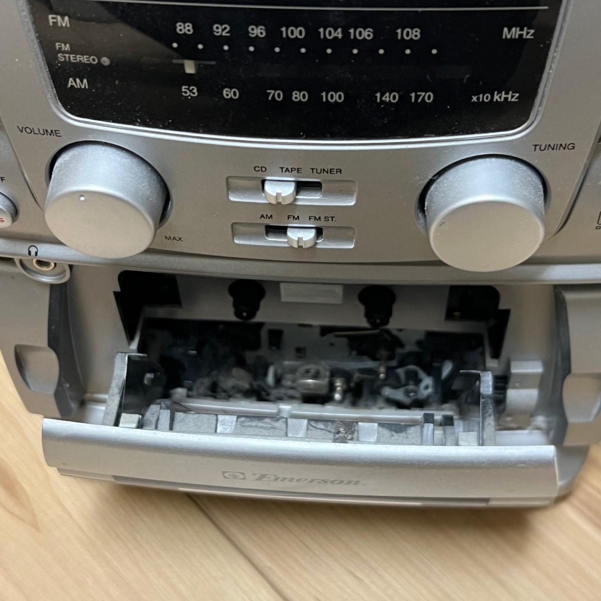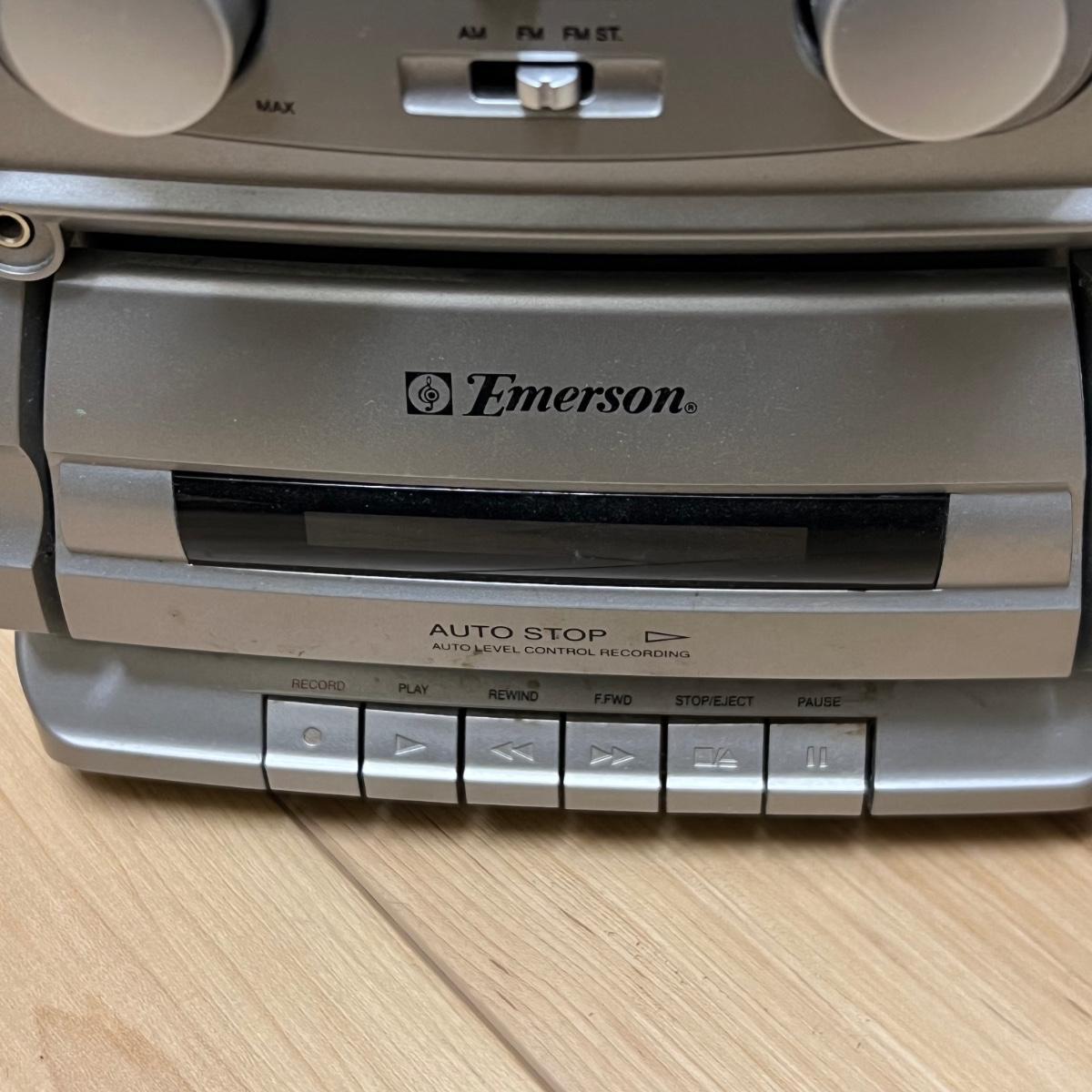 This Emerson stereo powered on when plugged in but sound could not be tested due to no speakers.
