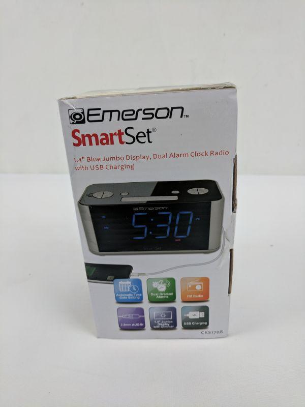 Emerson SmartSet, 1.4" Blue Jumbo Display Dual Alarm Clock Radio w/USB Charging - New