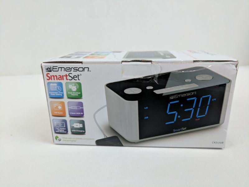 Emerson SmartSet, 1.4" Blue Jumbo Display Alarm Clock Radio w/USB Charging - New