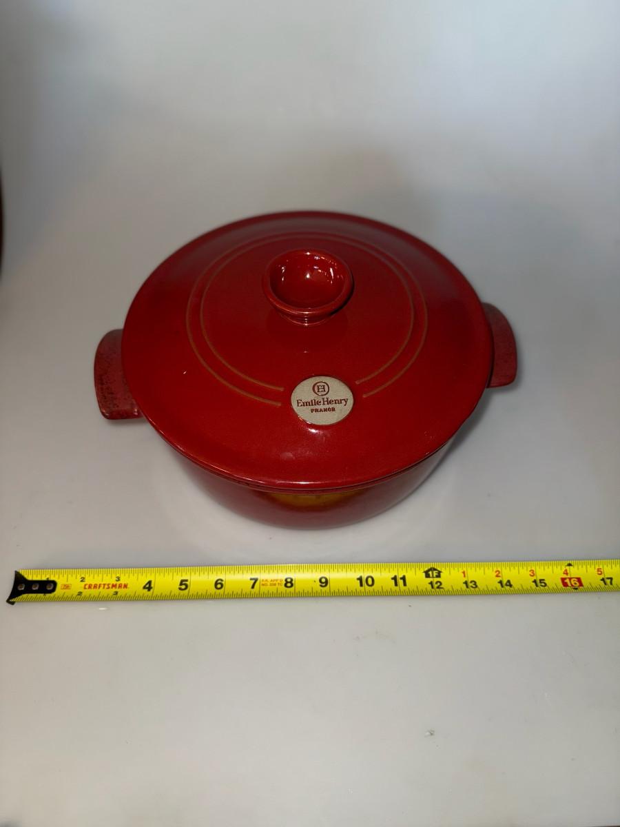 The Emile Henry Flame Round Stewpot Dutch Oven in Burgundy is a versatile and stylish cookware piece perfect for slow-cooking, braising, and stewing. With a generous 4.2-quart capacity, it is crafted from high-quality ceramic that ensures even heat distribution and retains warmth. This beautiful Dutch oven is safe for use on the stovetop, in the oven, and even over an open flame, making it ideal for various cooking methods. Its vibrant burgundy color adds a pop of elegance to your kitchen, while the durable construction promises long-lasting performance. Enjoy delicious meals and effortless cleanup with this stunning Emile Henry stewpot!