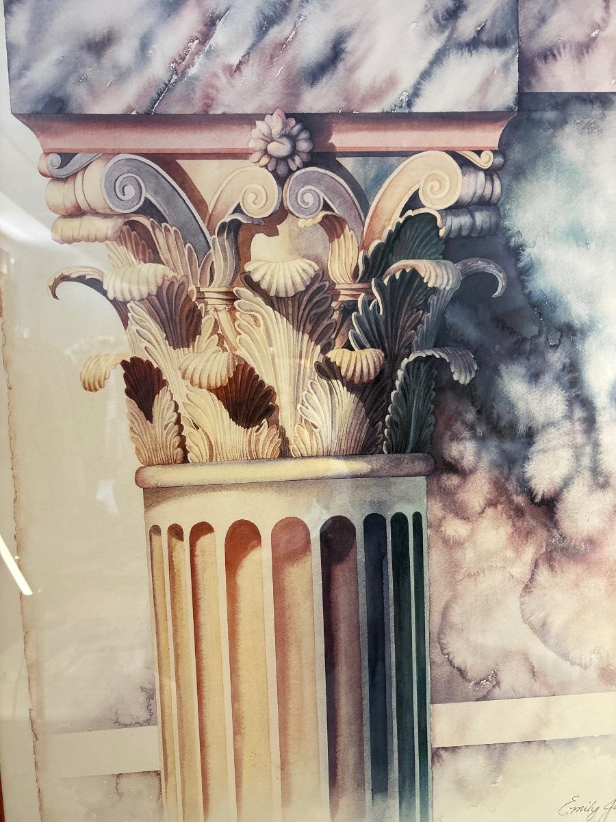 Emily James framed column print; measuring 27” x 37.5” frame size