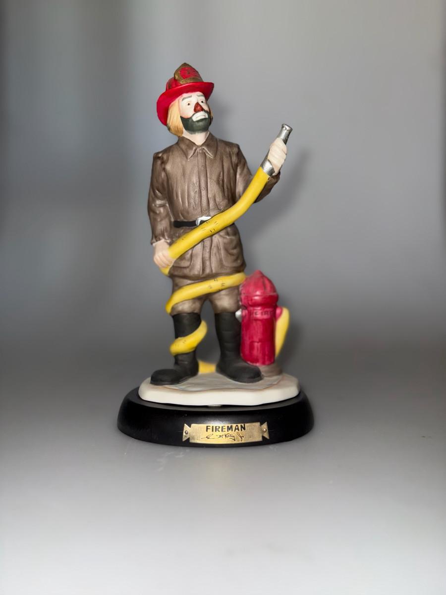 Perfect for collectors of Emmett Kelly memorabilia or those who appreciate unique, themed figurines, this piece is ideal for display on a shelf, in a curio cabinet, or as part of a firefighter-themed collection. Celebrate the whimsical yet courageous spirit of Emmett Kelly Jr. with this charming Firefighter figurine, sure to bring joy and character to your home decor!