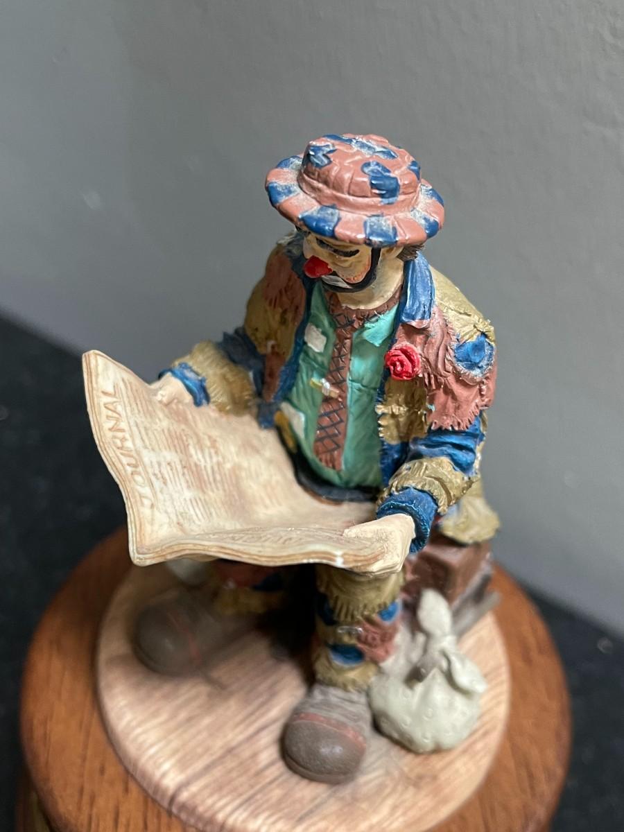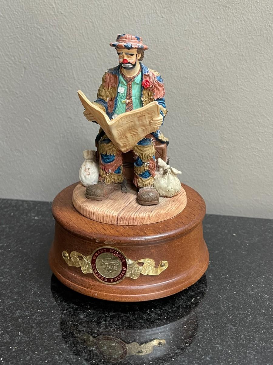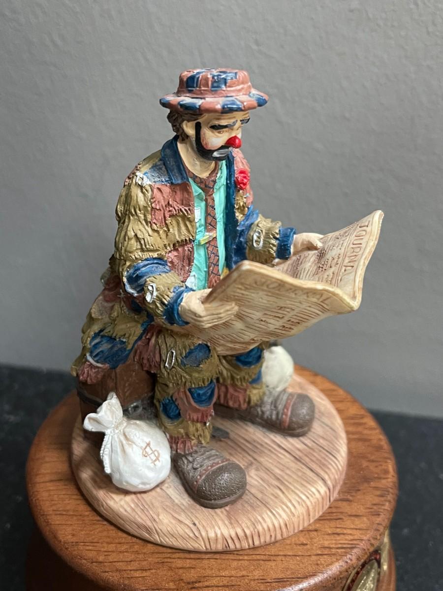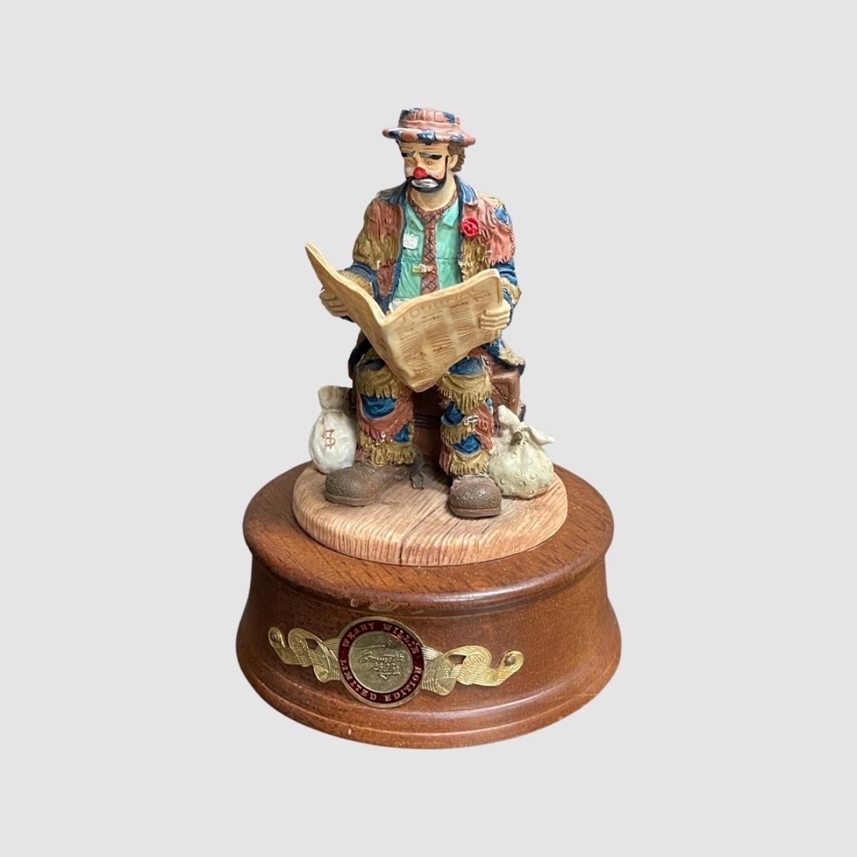 Emmett Kelly Weary Willie Clown Hobo Music Box. Perfect working condition. Approx 5 1/2" high x 3 1/2" wide. # 282