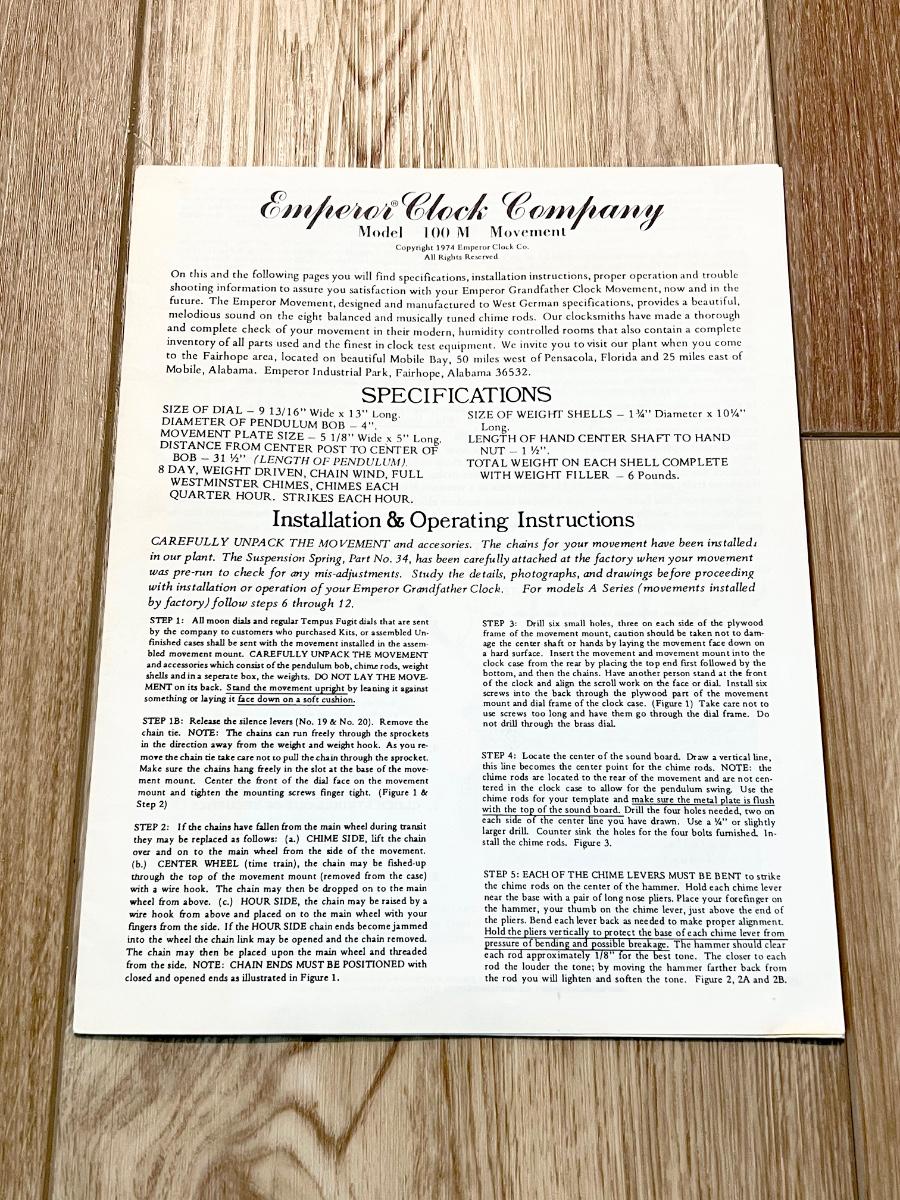 EMPEROR CLOCK CO ~ Grandfather Clock ~ Chimes Every 15 Minutes