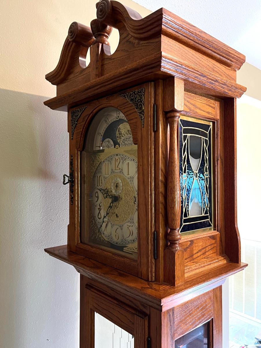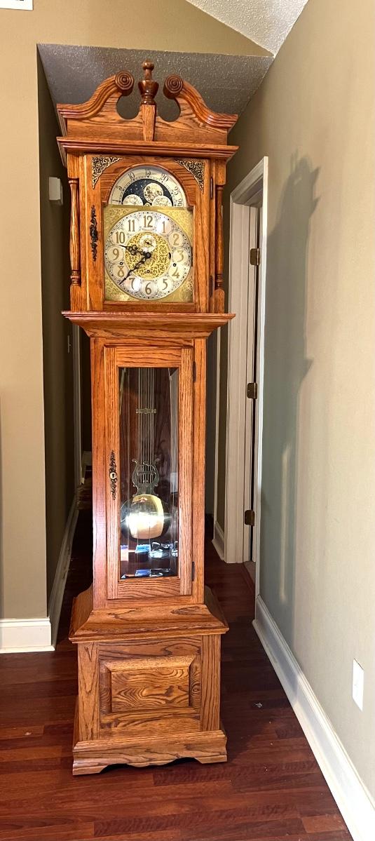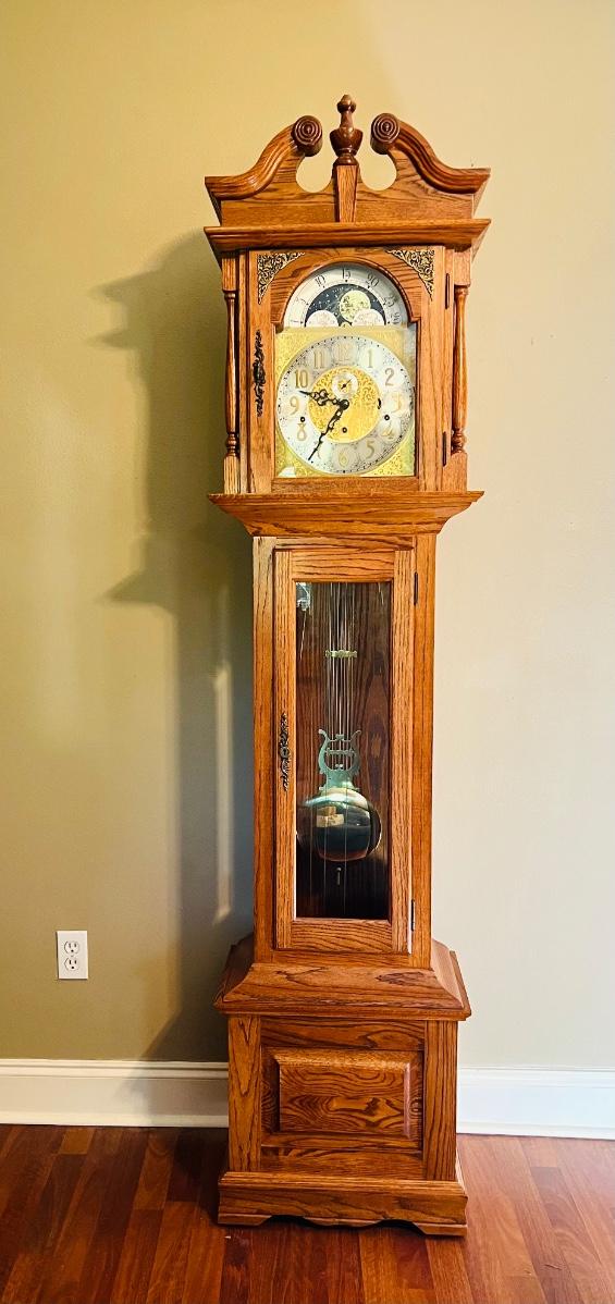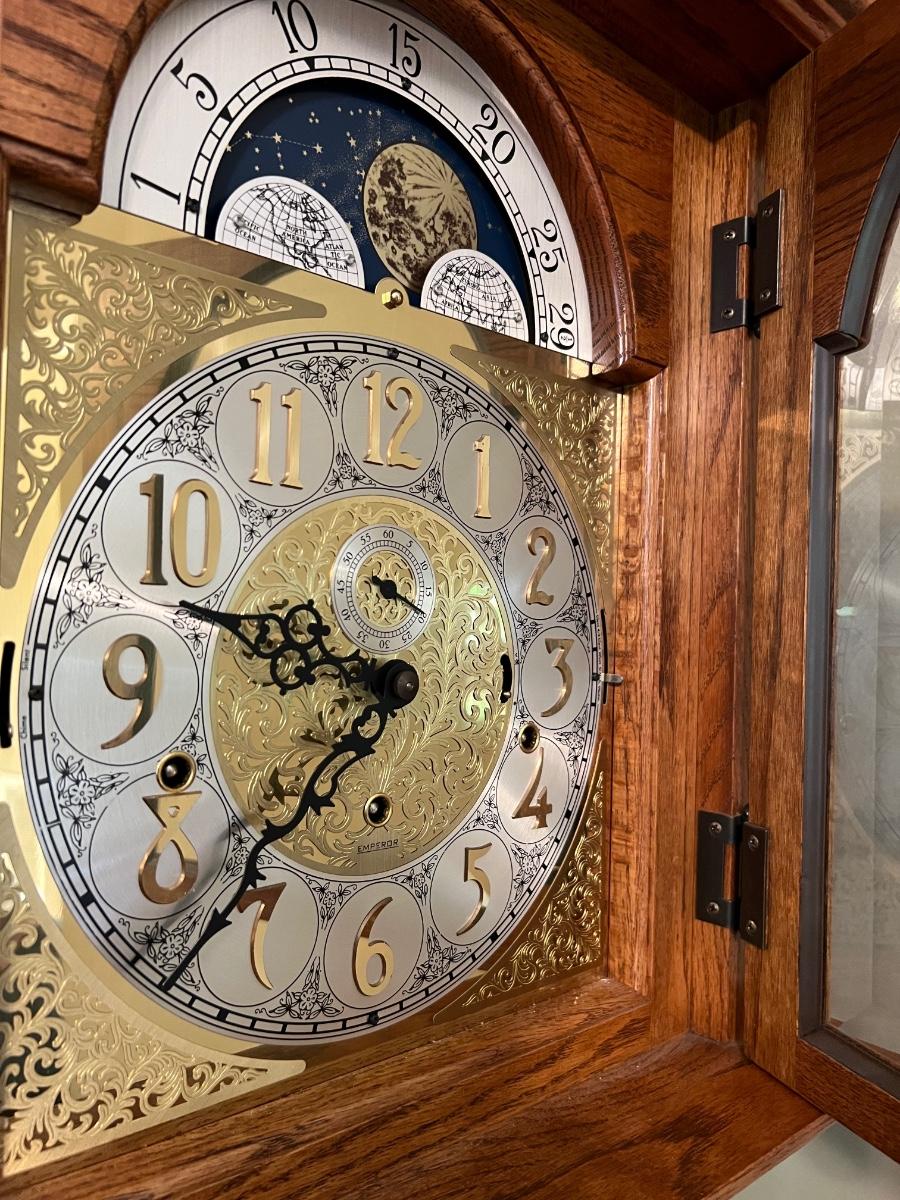 Beautiful Oak Emperor Grandfather Clock Model 300 series measures 82 inches
