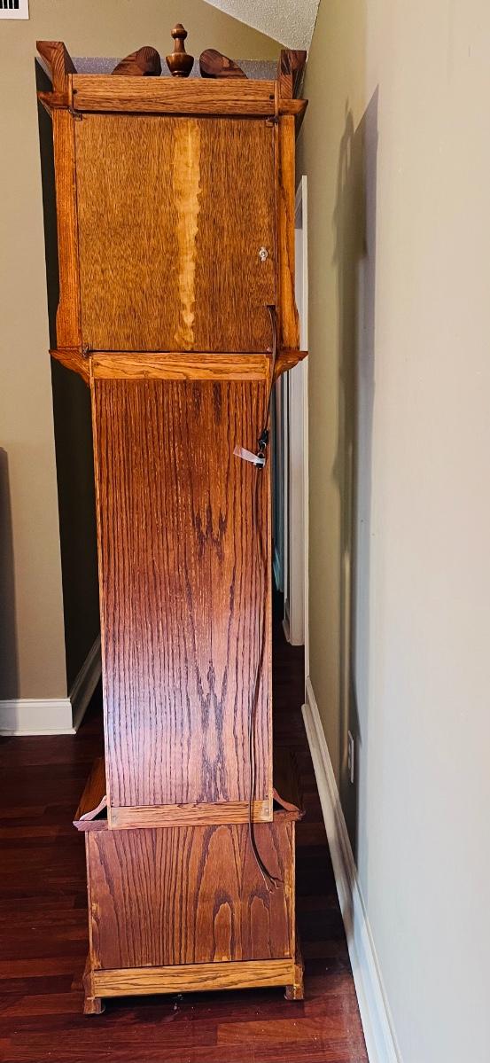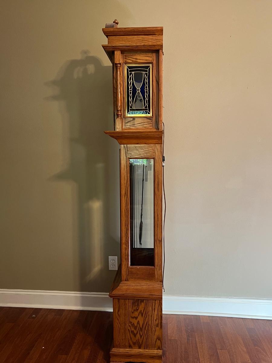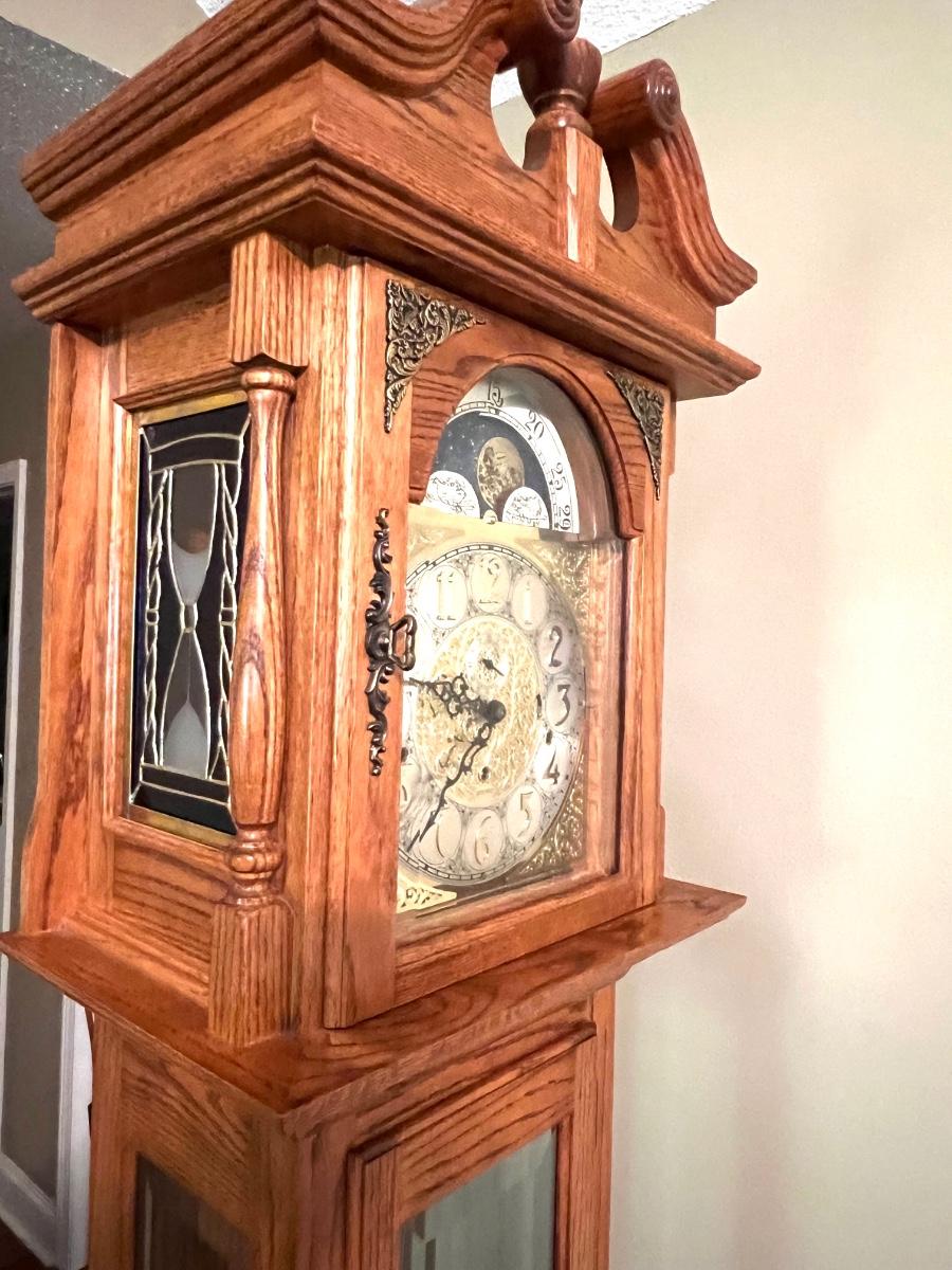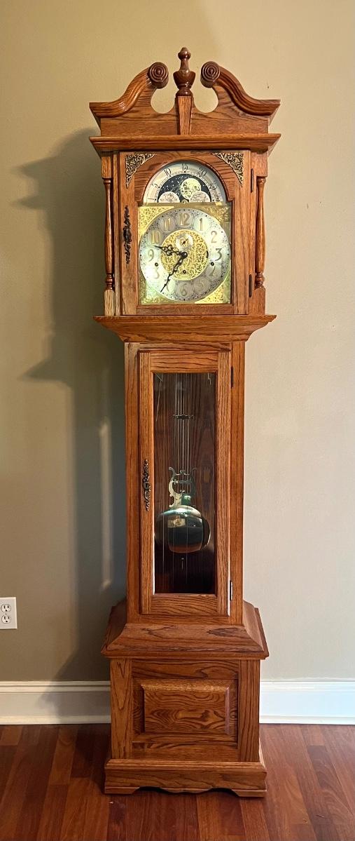 Beautiful Oak Emperor Grandfather Clock Model 300 series measures 82 inches