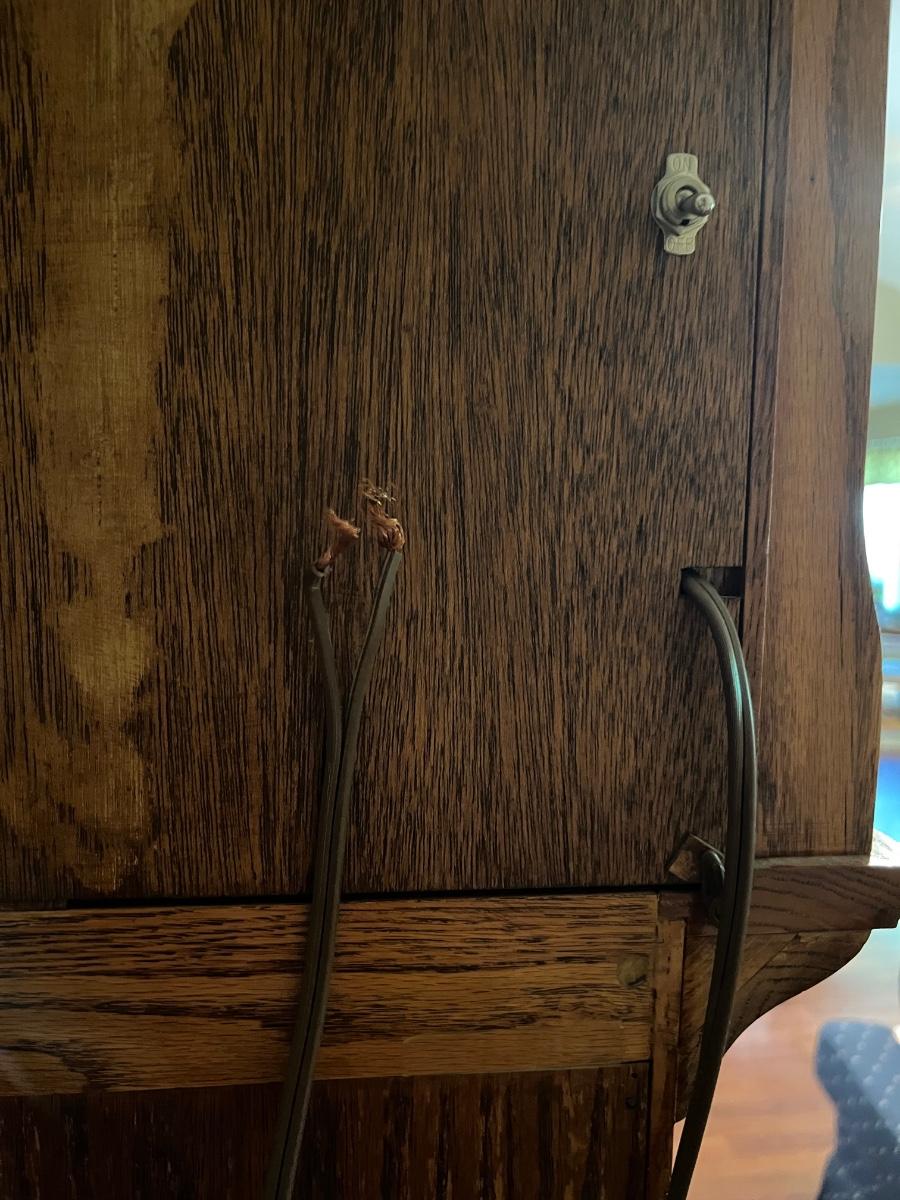 Tall, 19 1/2 inches wide and 13 inches deep. Does not work as the cord is frayed, see picture.