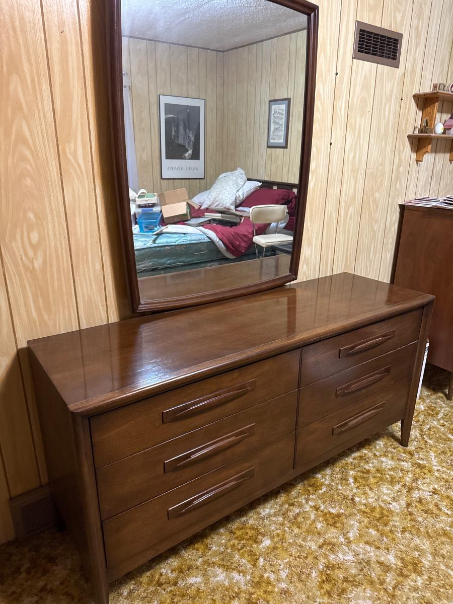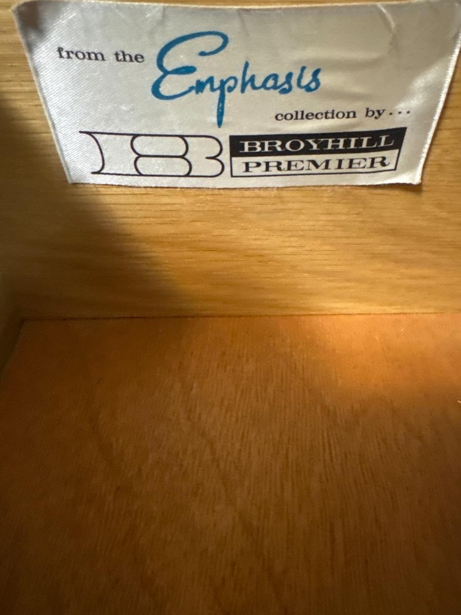 Emphasis by Broyhill Premiuer 6 drawer dresser with mirror.. Excellent condition for its age. Dimensions are 60 inches wide by 30 1/2 inches tall by 19 inches deep. The mirror measures 43 inches tall by 33 1/2 inches wide by 2 inches deep.