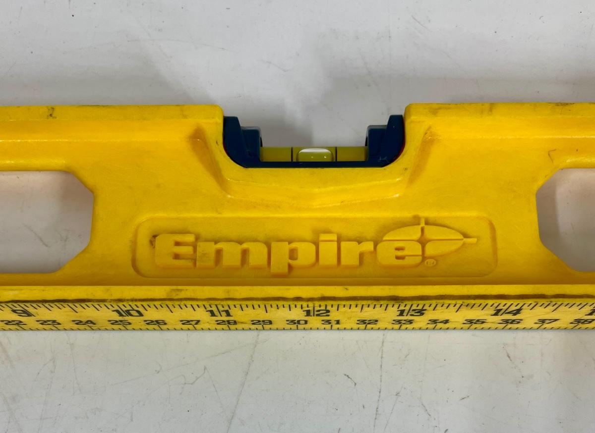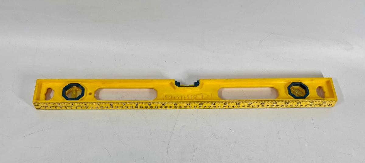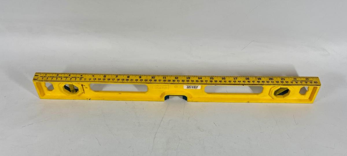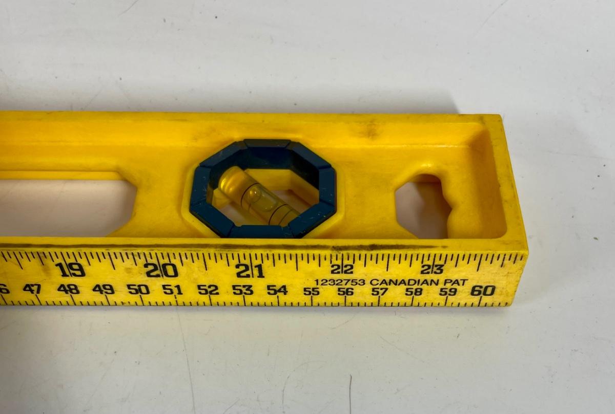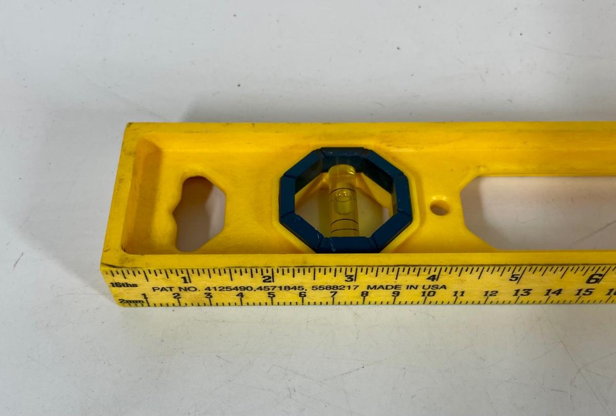 Bright yellow level has three different level bubble indicators, made from a material that will not rust.