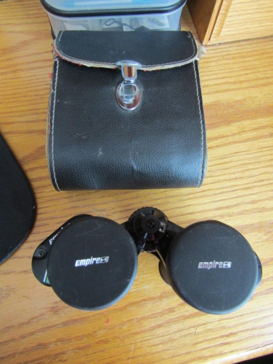 Empire Binoculars. Case shows signs of wear and is missing carrying strap.