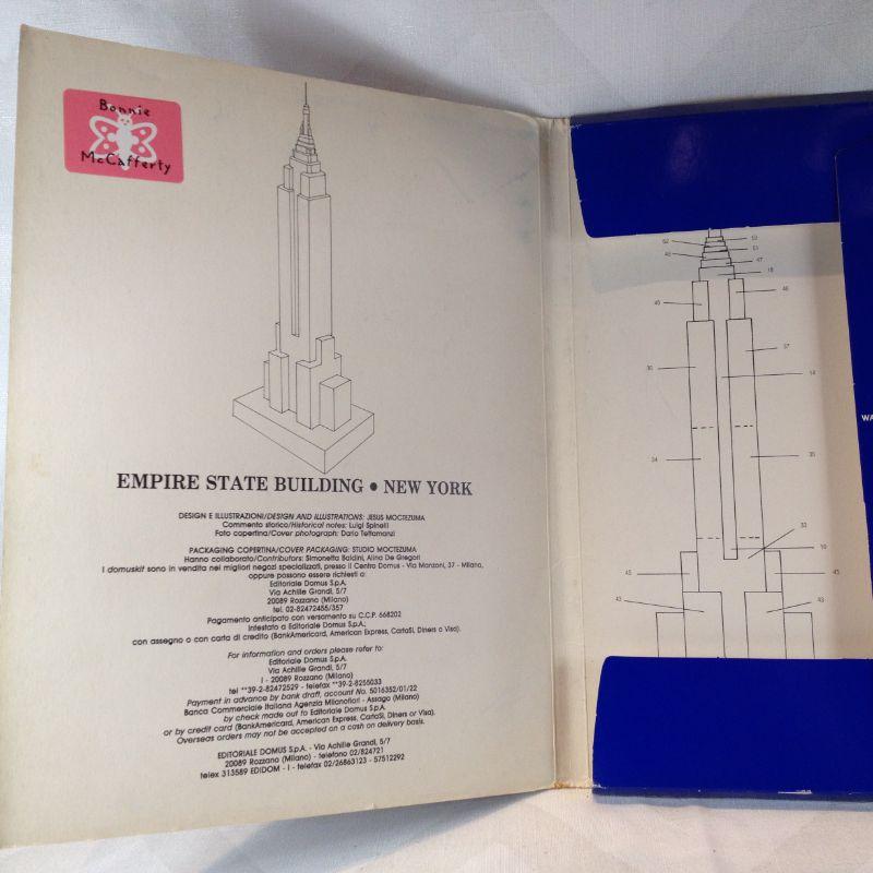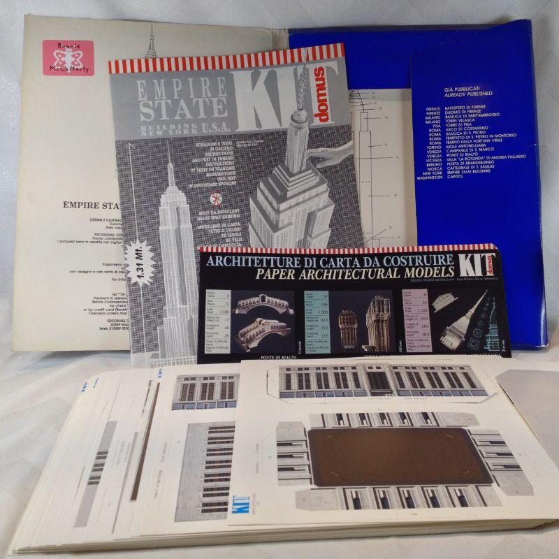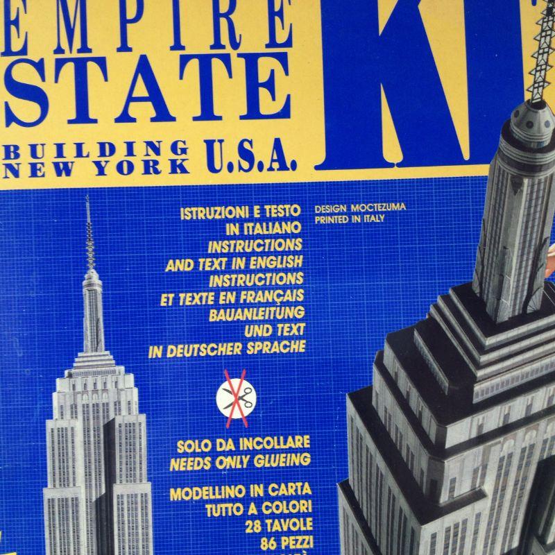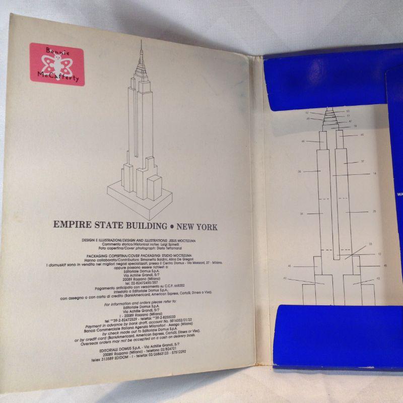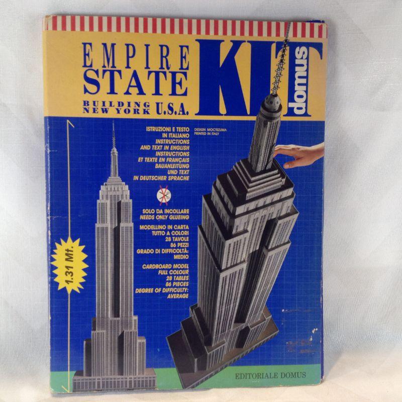 This auction lot is for a complete kit of die cut pieces to build the Empire State Building as a cardboard model. This is a complete and unused set however, over the years the box has become a bit tattered. Great family project or fun for most anyone.