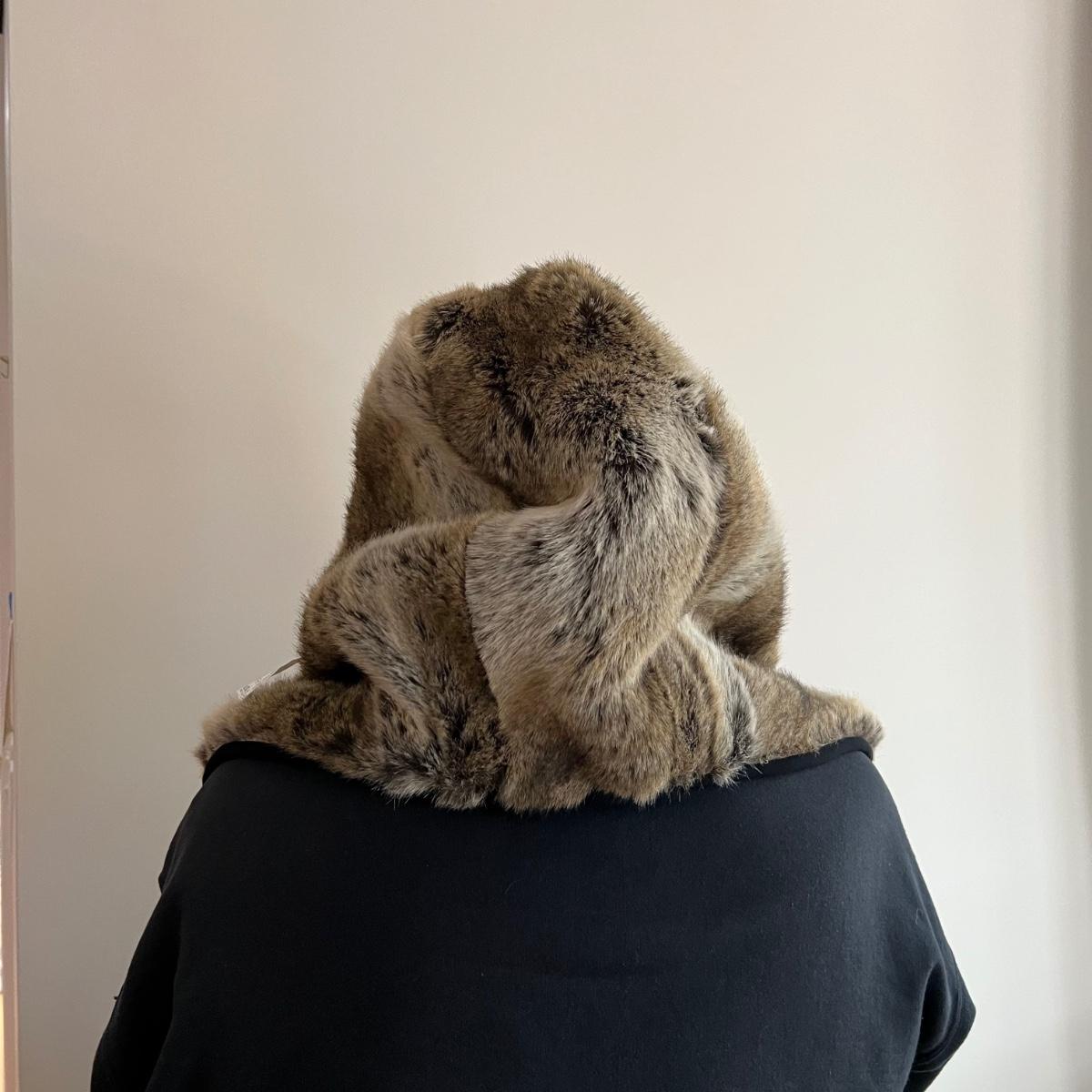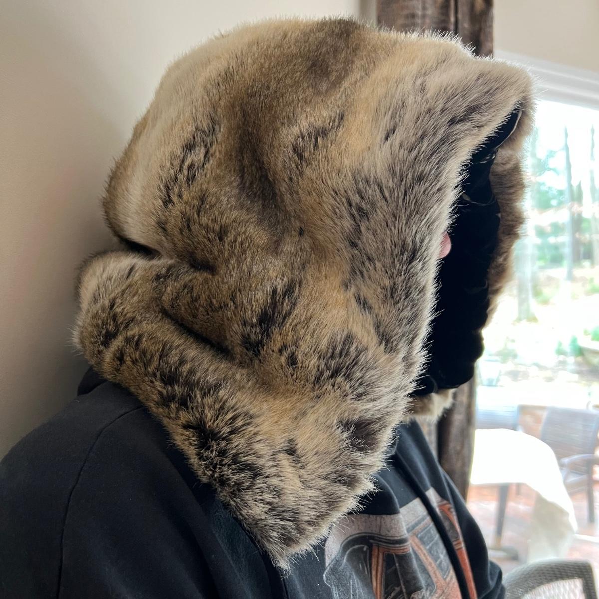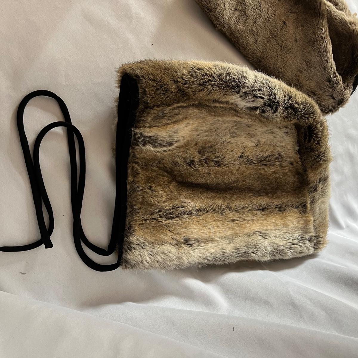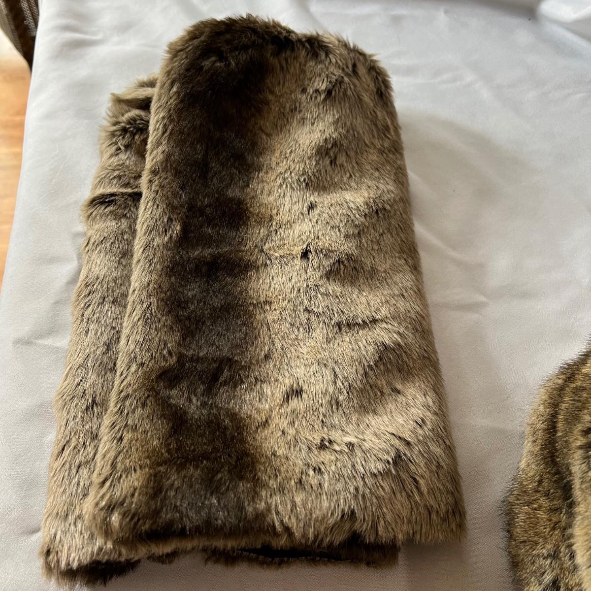 This fur hood and pair of arm warmer sleeves appear to be faux fur and they are super soft. The hood still has its label attached and the sleeves are still factory attached so they all appear to have not been worn before. The hood has ties and a soft velour like lining. Sleeves have elasticated cuffs and a silk lining. The hood is very large, label has 42 on it which is possibly for its size.