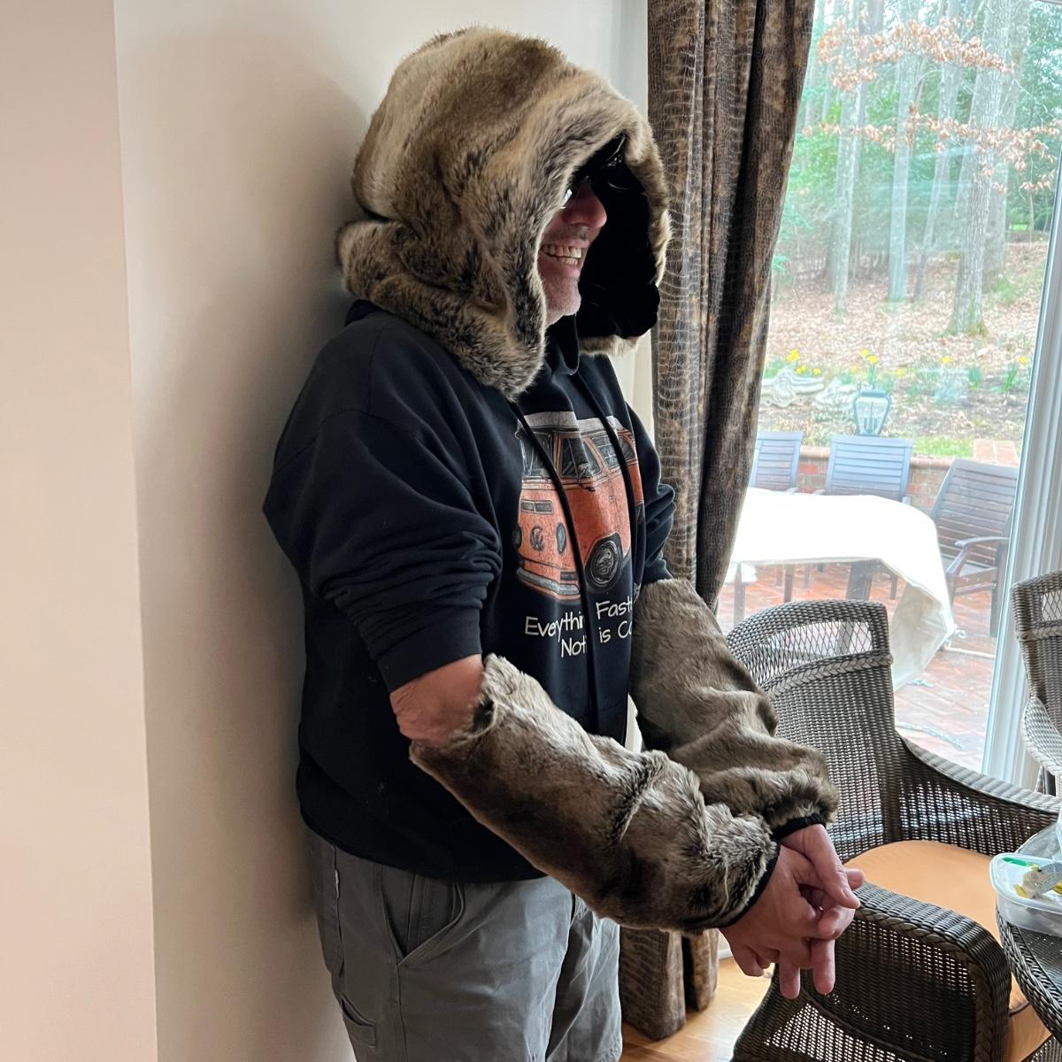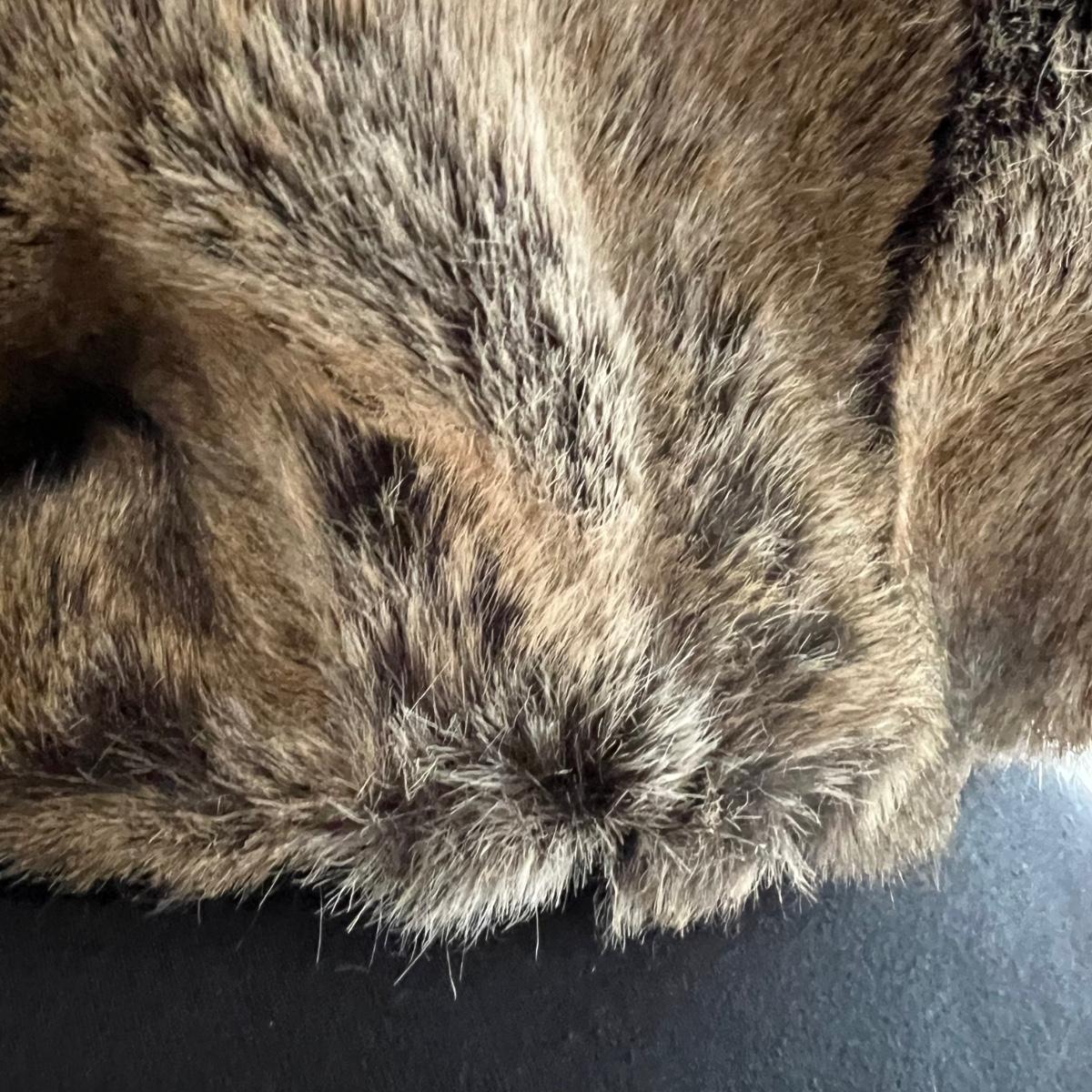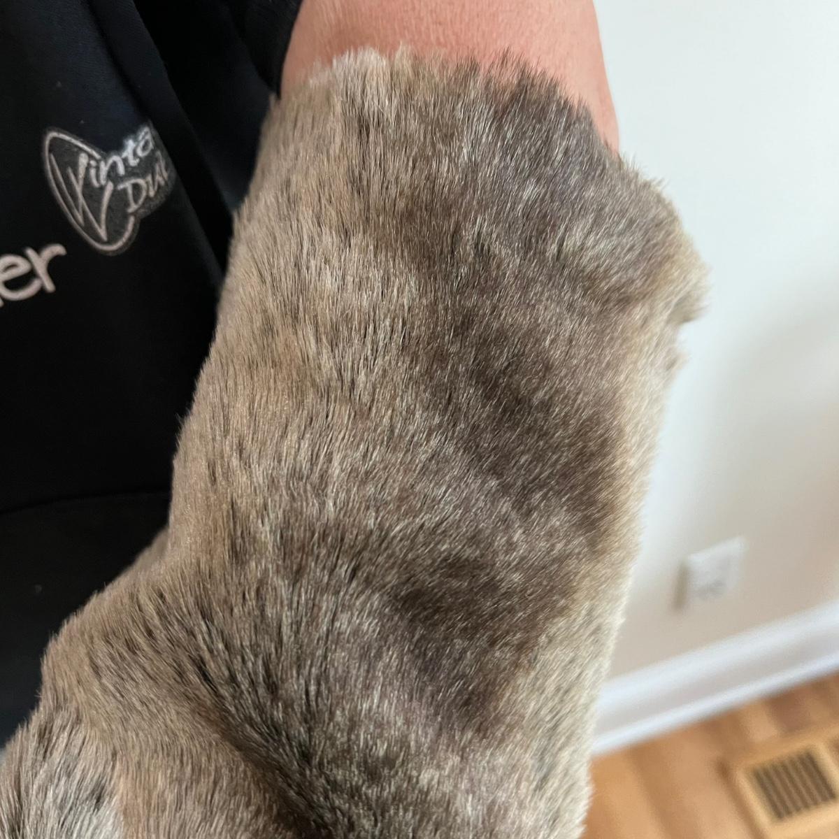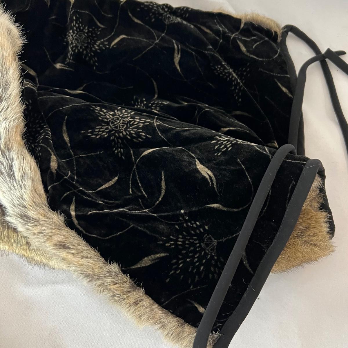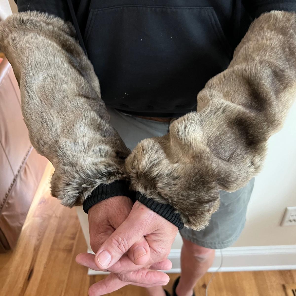 This fur hood and pair of arm warmer sleeves appear to be faux fur and they are super soft. The hood still has its label attached and the sleeves are still factory attached so they all appear to have not been worn before. The hood has ties and a soft velour like lining. Sleeves have elasticated cuffs and a silk lining. The hood is very large, label has 42 on it which is possibly for its size.