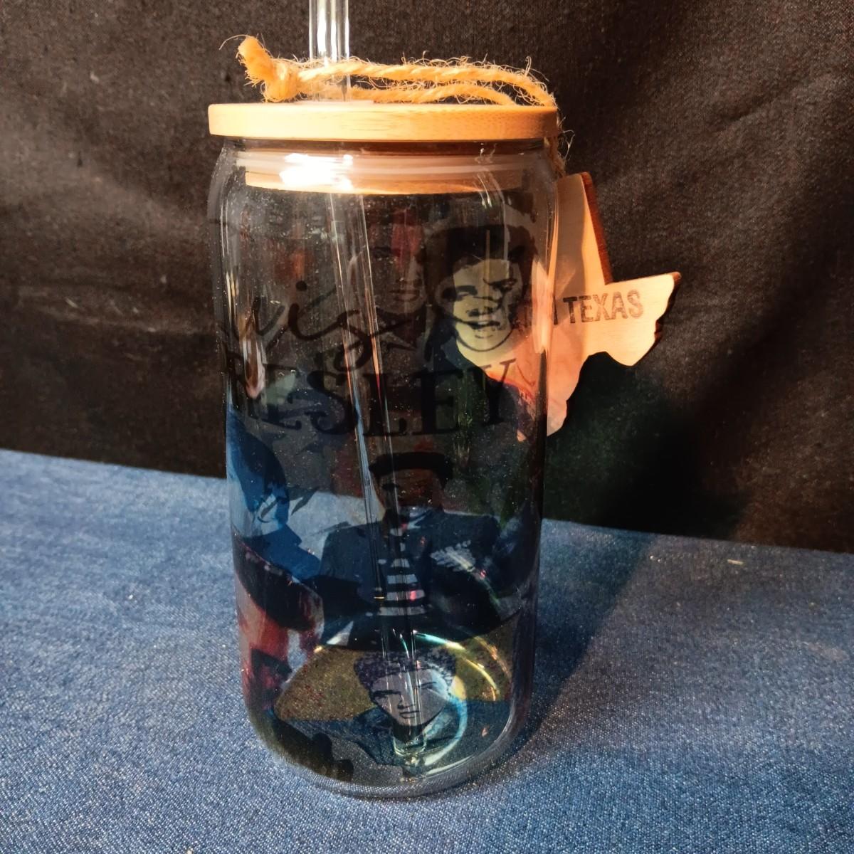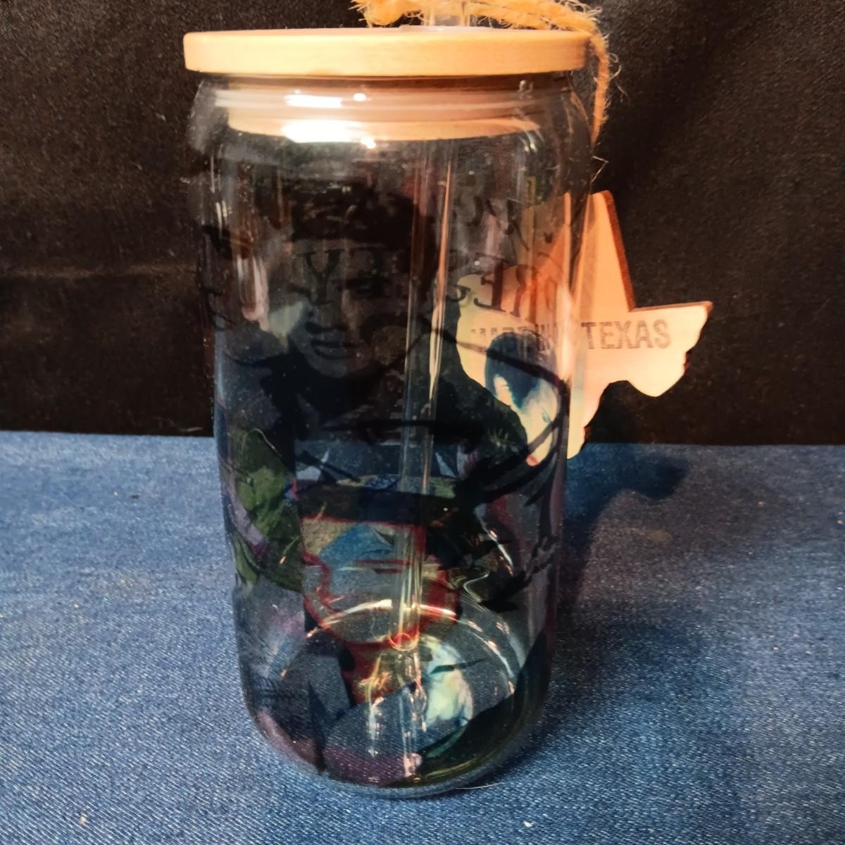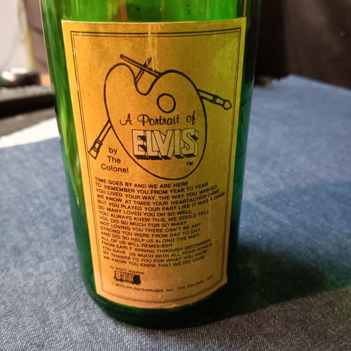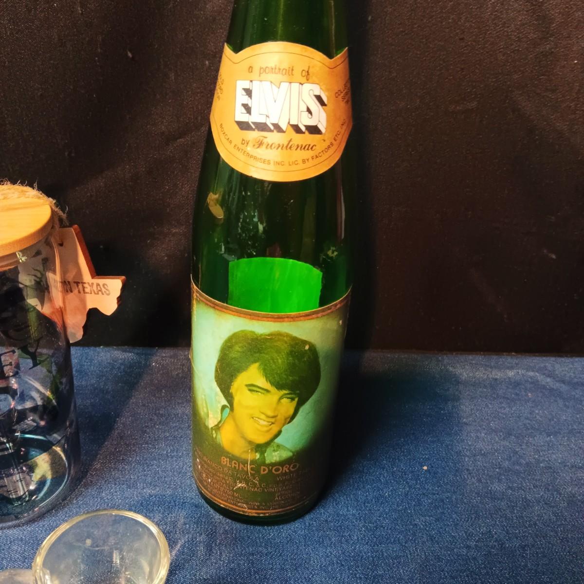 EMPTY BOTTLE "A PORTRAIT OF ELVIS" SHOT GLASS AND ELVIS GLASS WITH GLASS STRAW