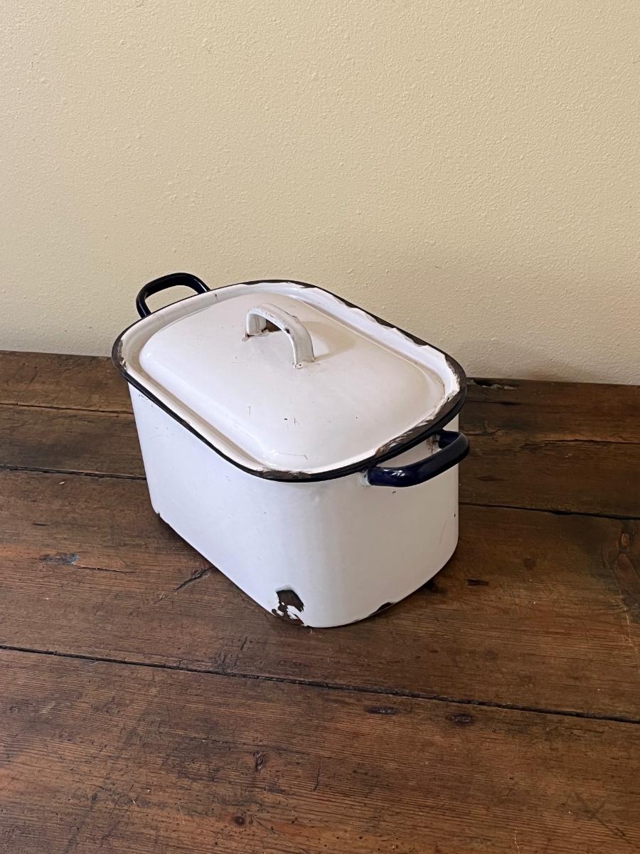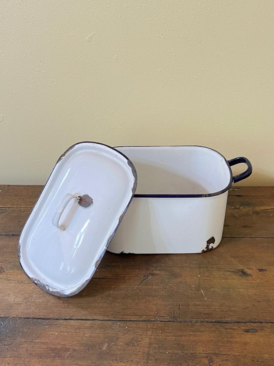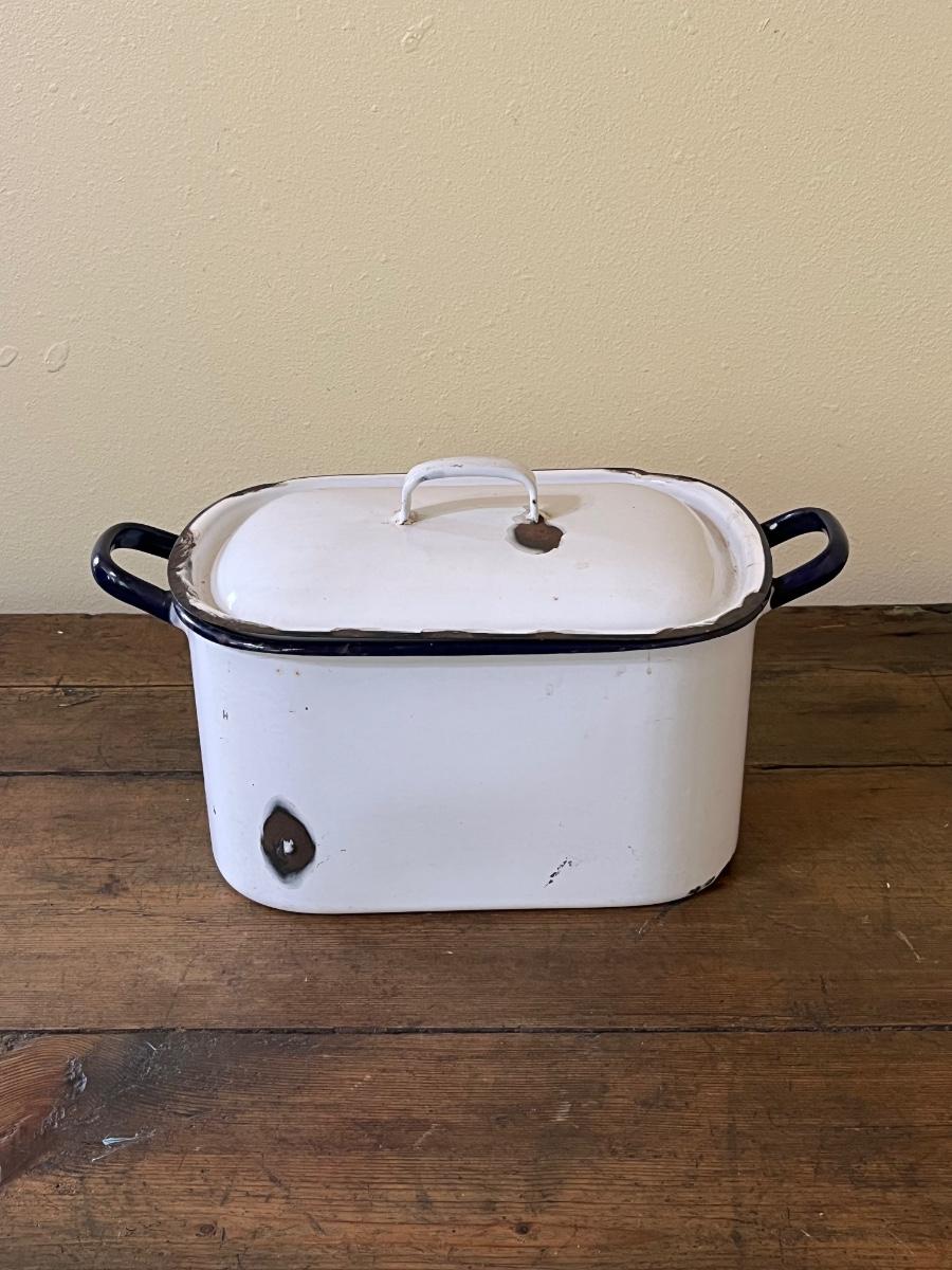 Enamel ~ Blue/White ~ Rectangle Lidded Pot~ *Read Details