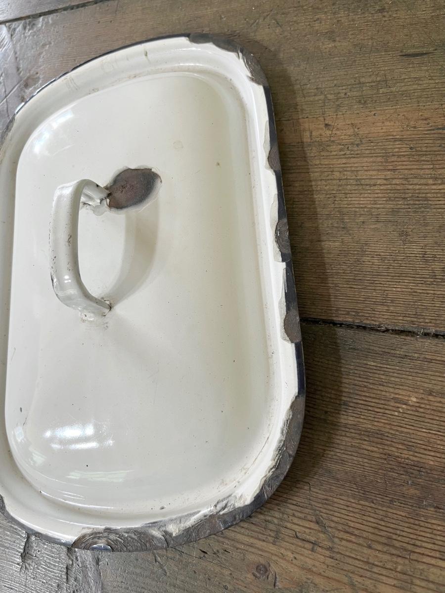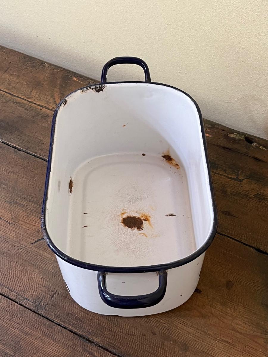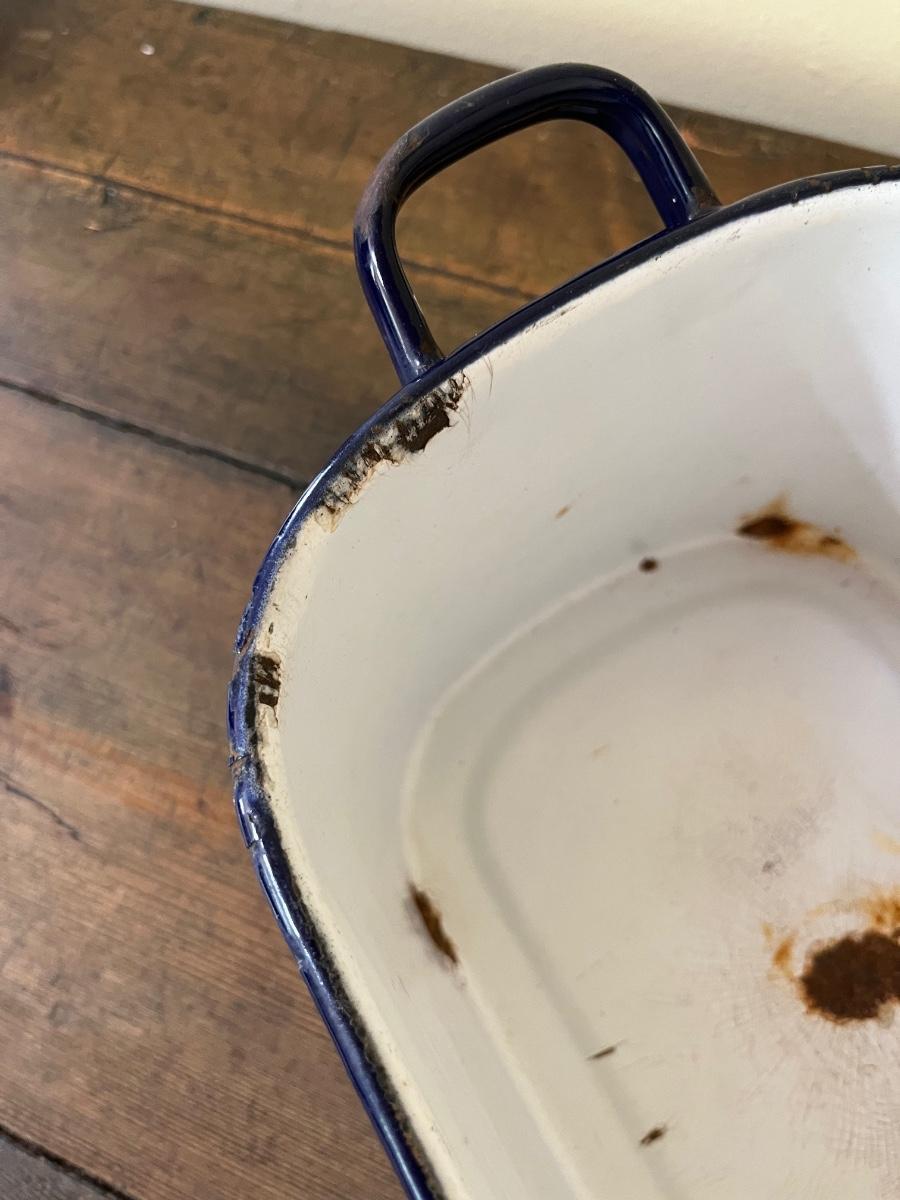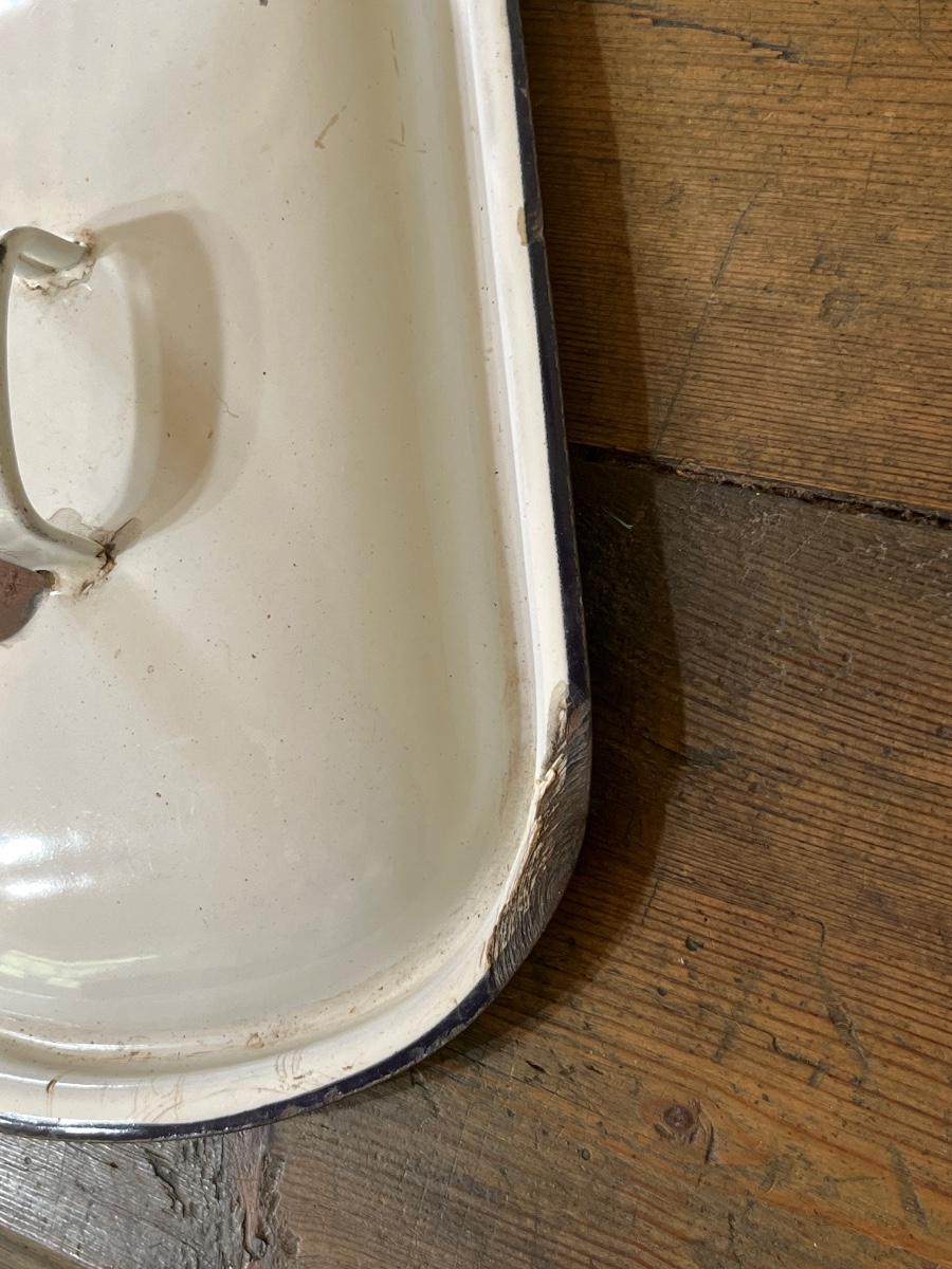 Enamel ~ Blue/White ~ Rectangle Lidded Pot~ *Read Details