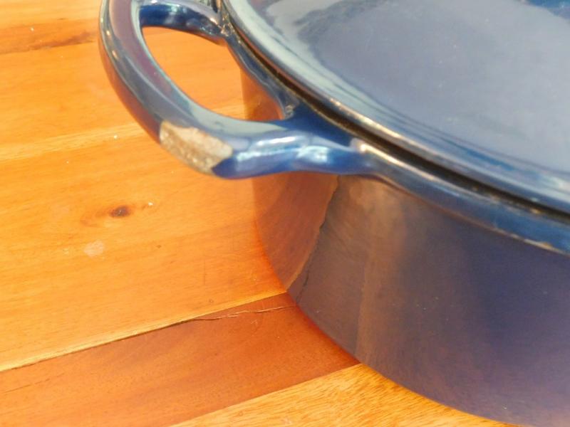 Enamel Cooking Pot has small chip on Handle