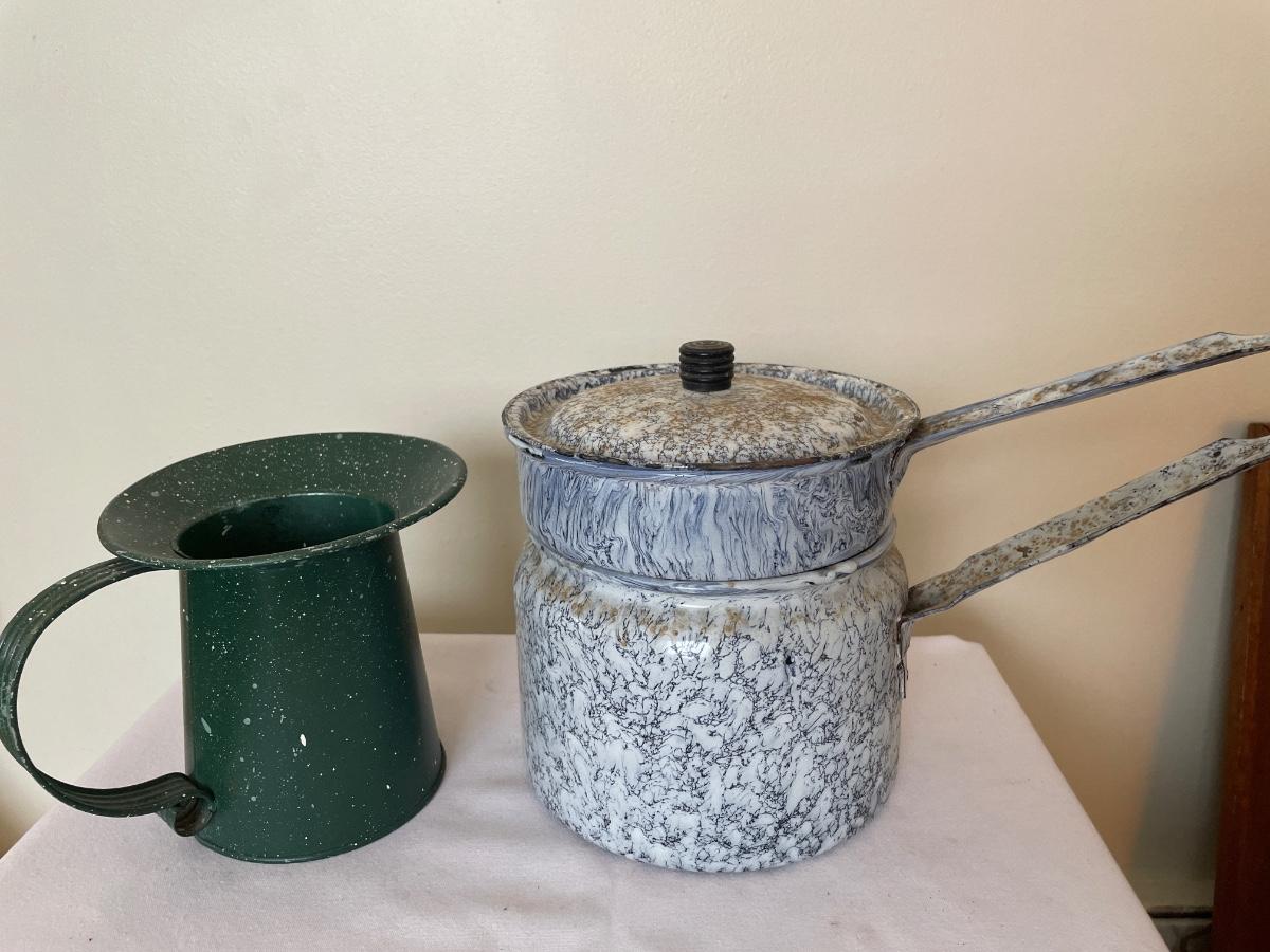 Enamel double boiler and pitcher