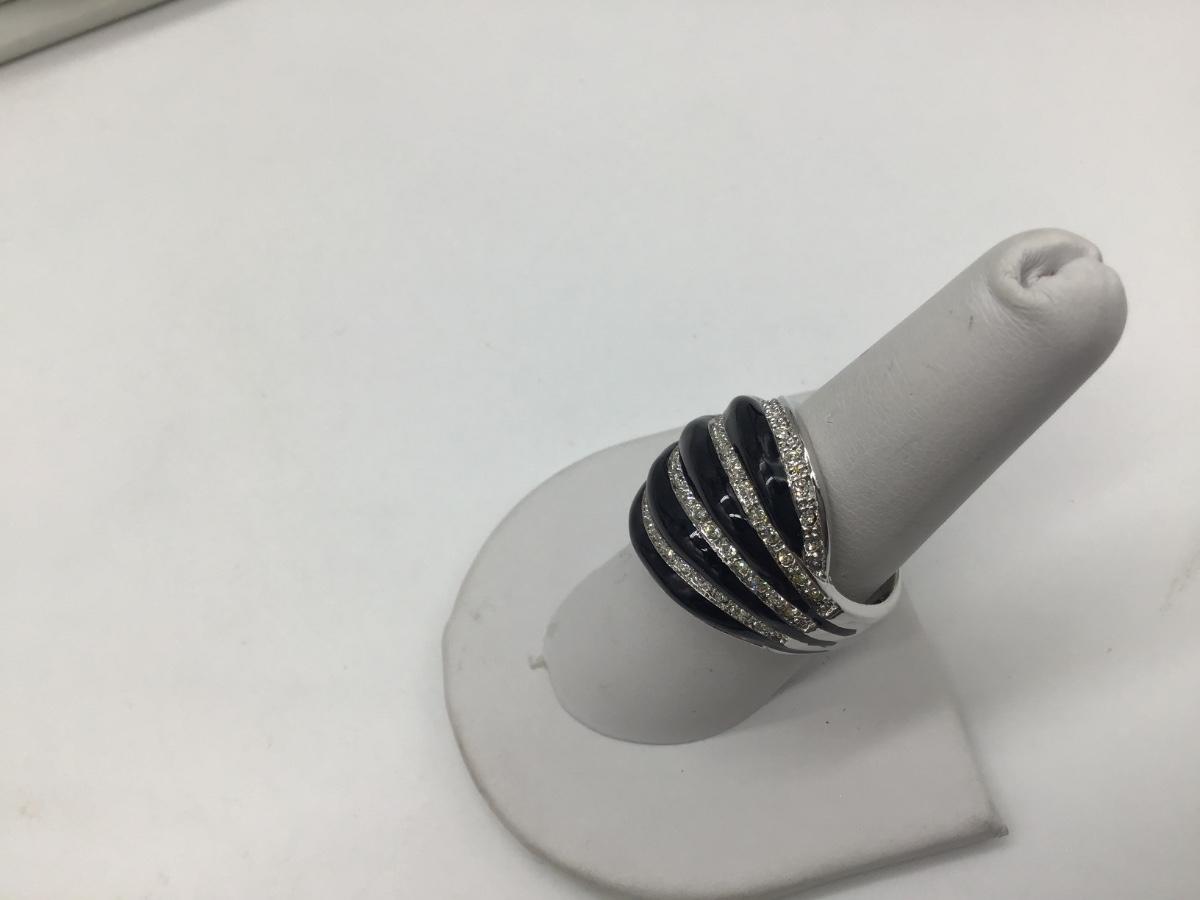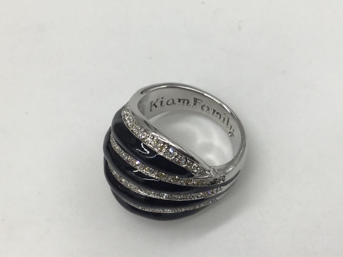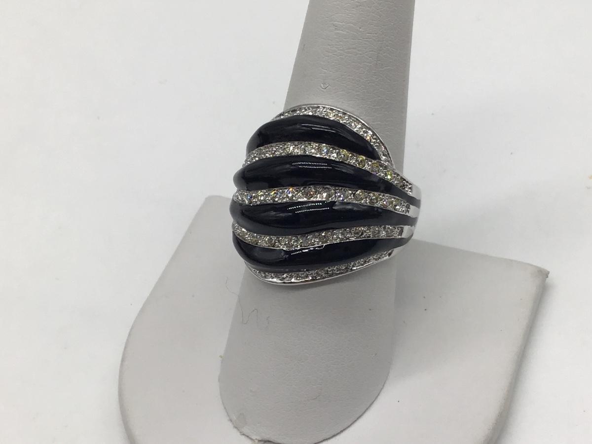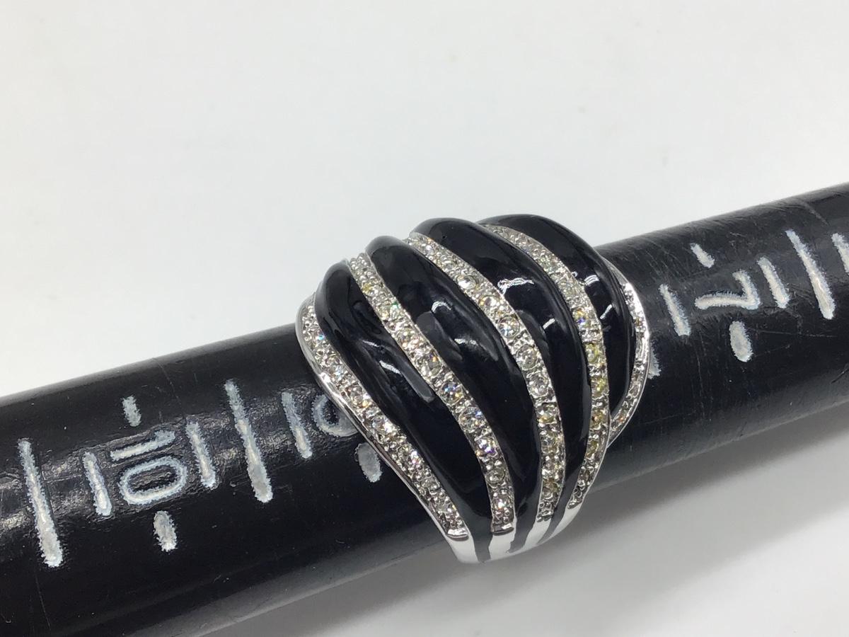 Vintage Large Black Enamel Rhinestone Ring “Kiam Family”