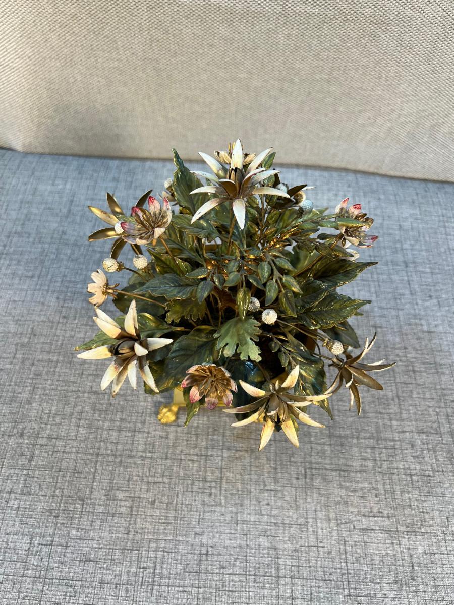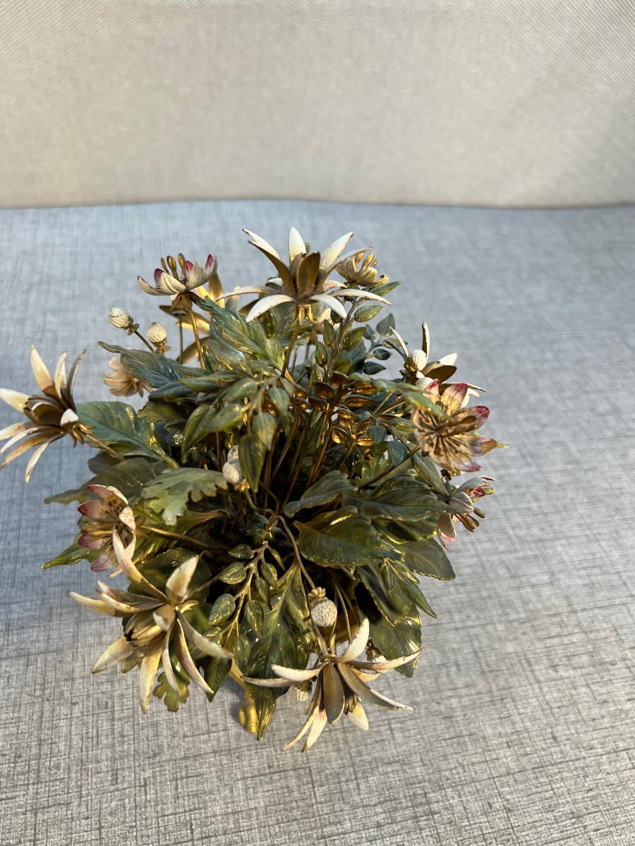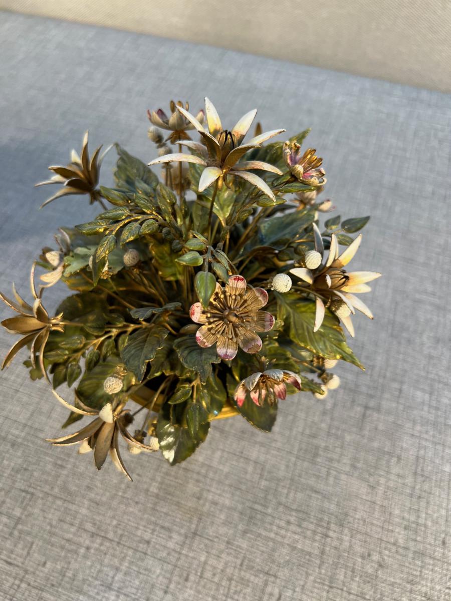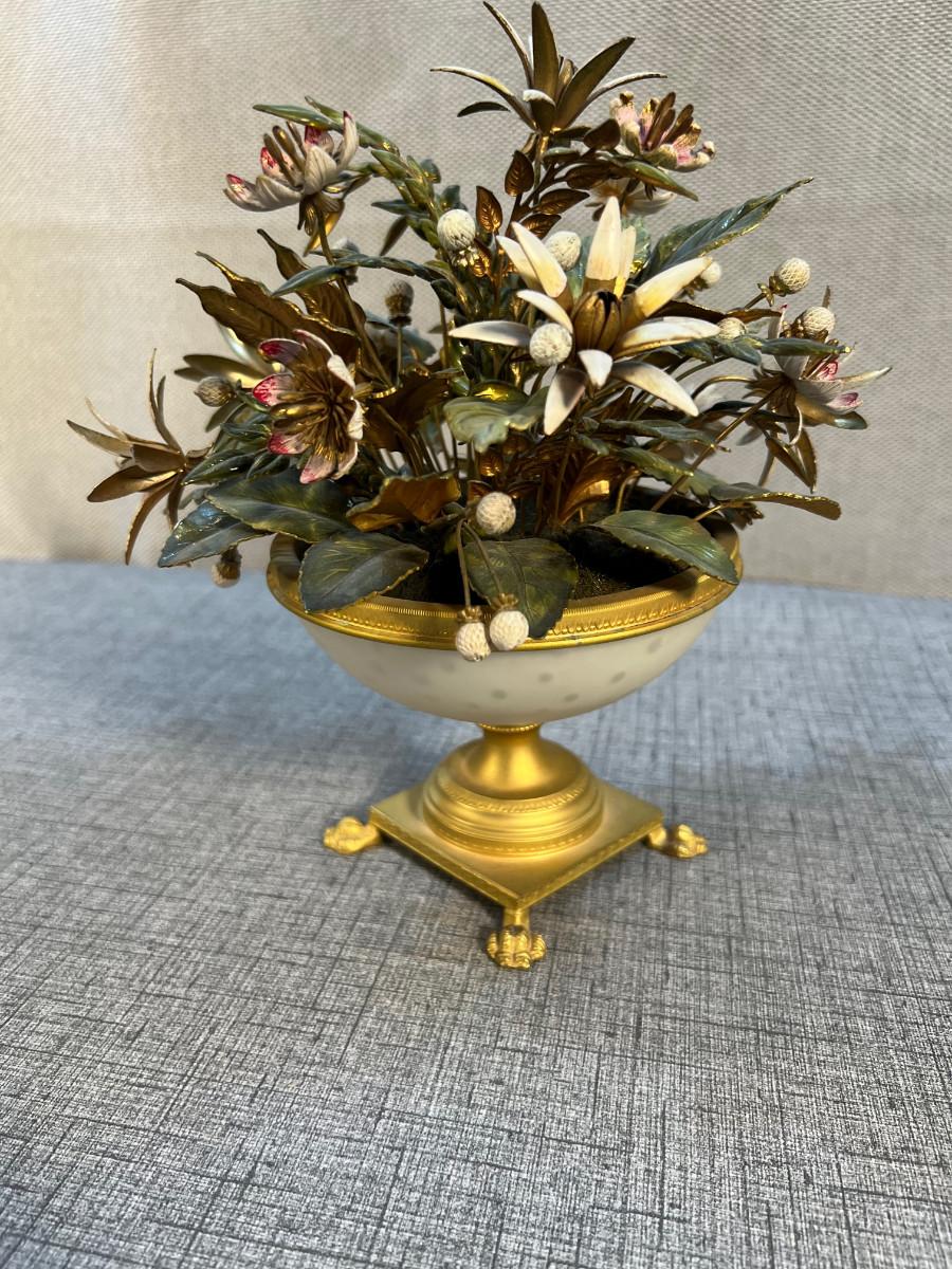 Enamel Floral Arrangement, Green, Ivory and Purple