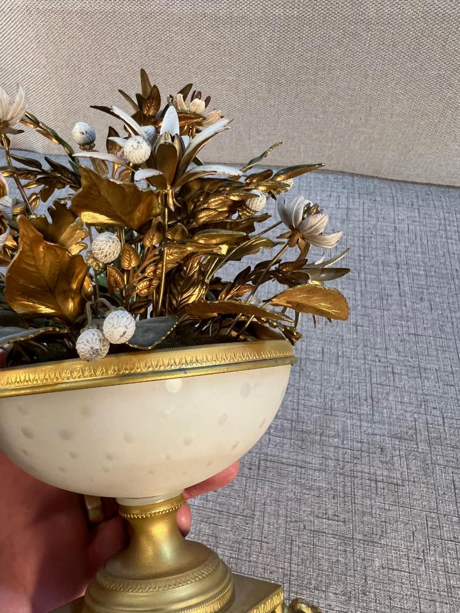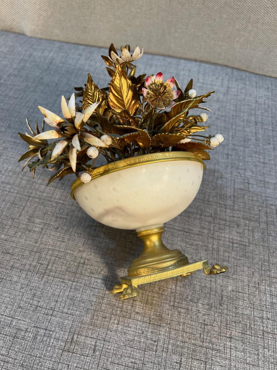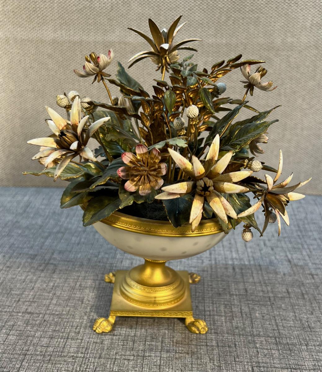 Enamel Floral Arrangement, Green, Ivory and Purple
