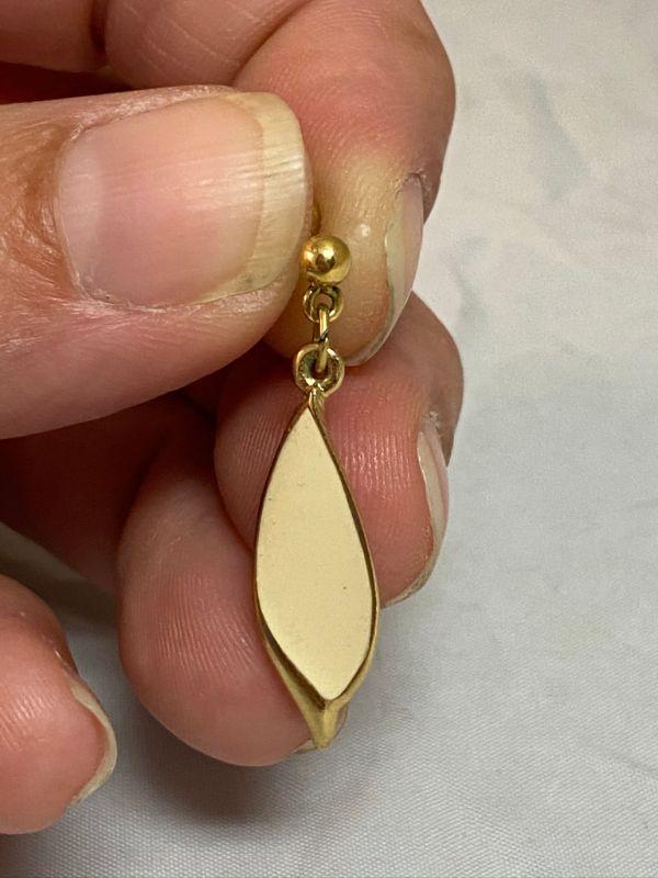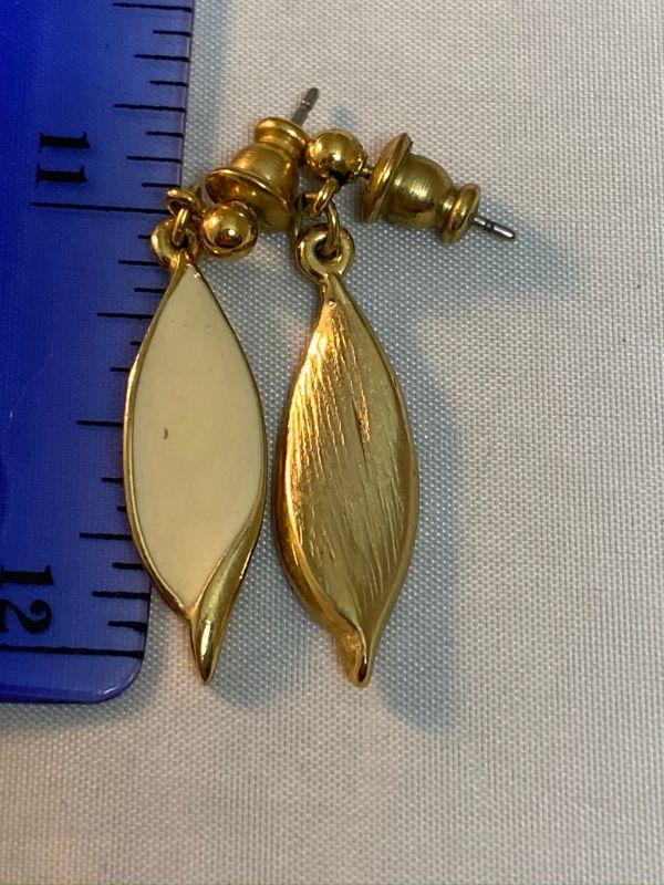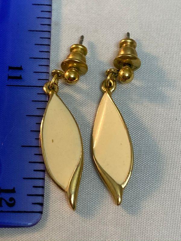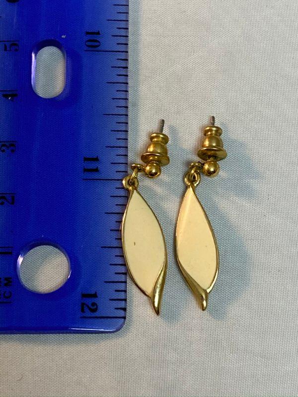 Simple cream colored enamel dangle earrings. Goldtone metal. Just over 1" in size. For pierced ears.