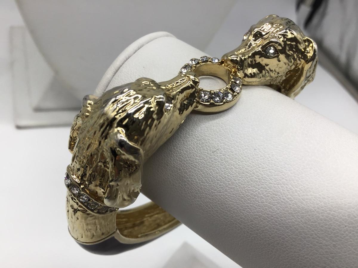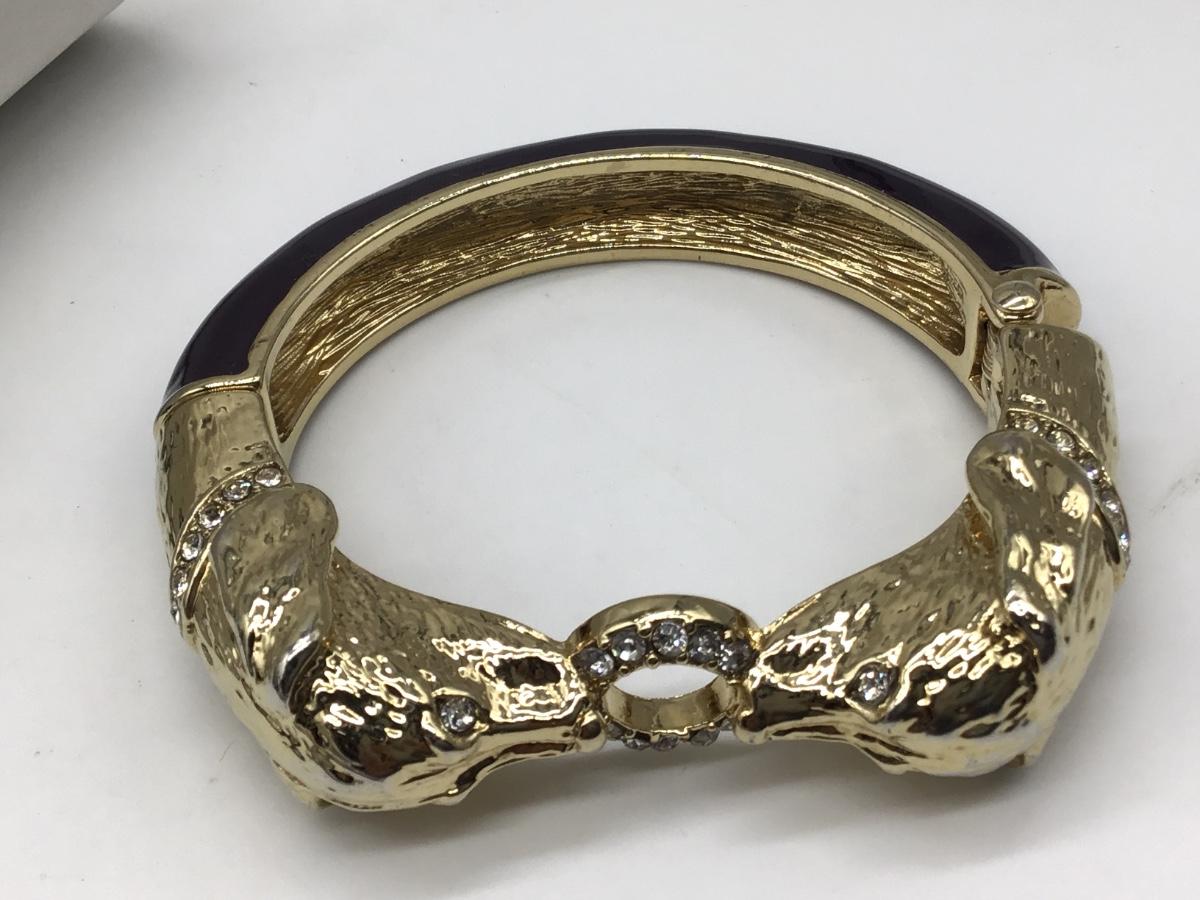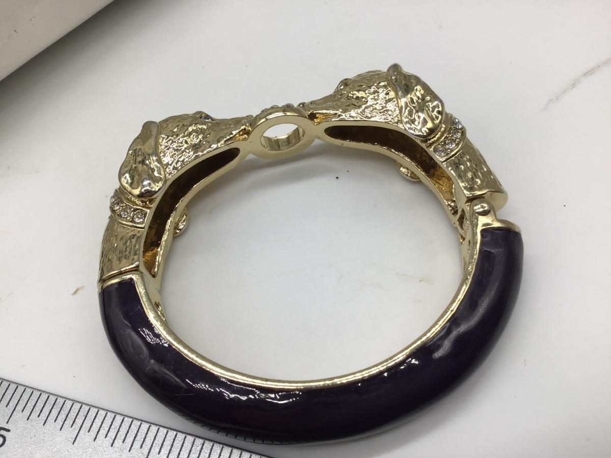 Enamel Hinged Rhinestone Dog Head Bracelet