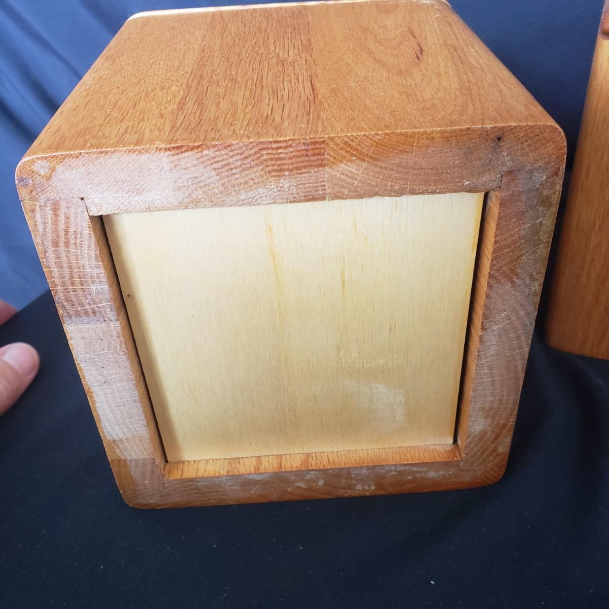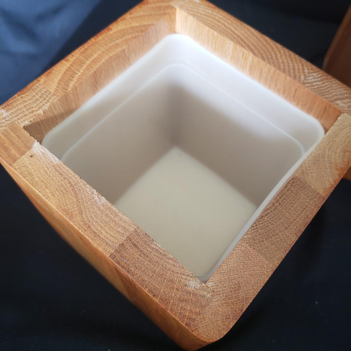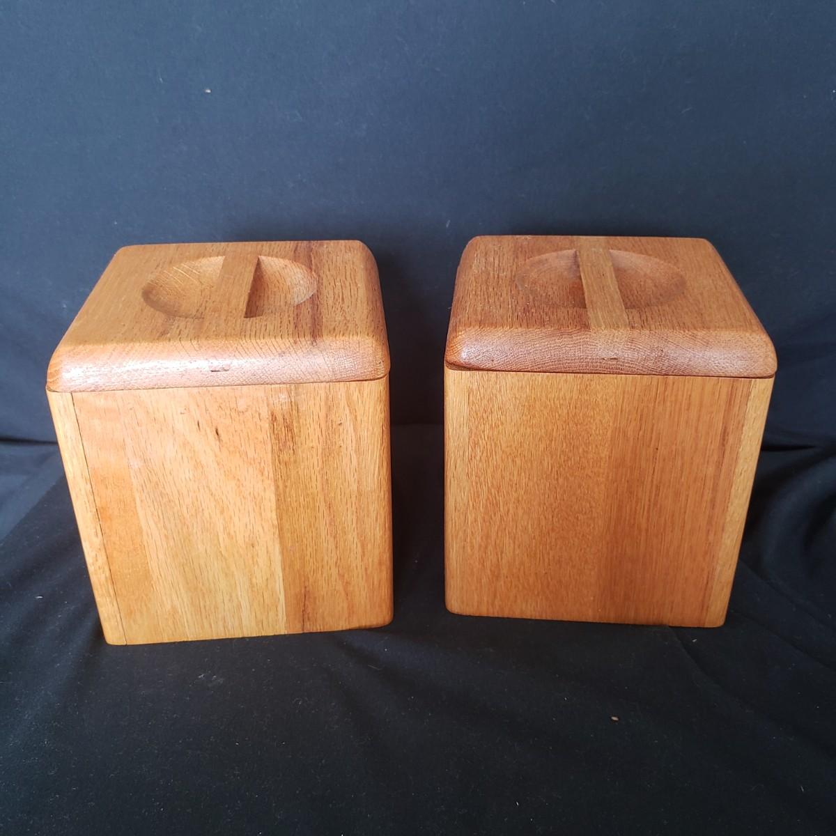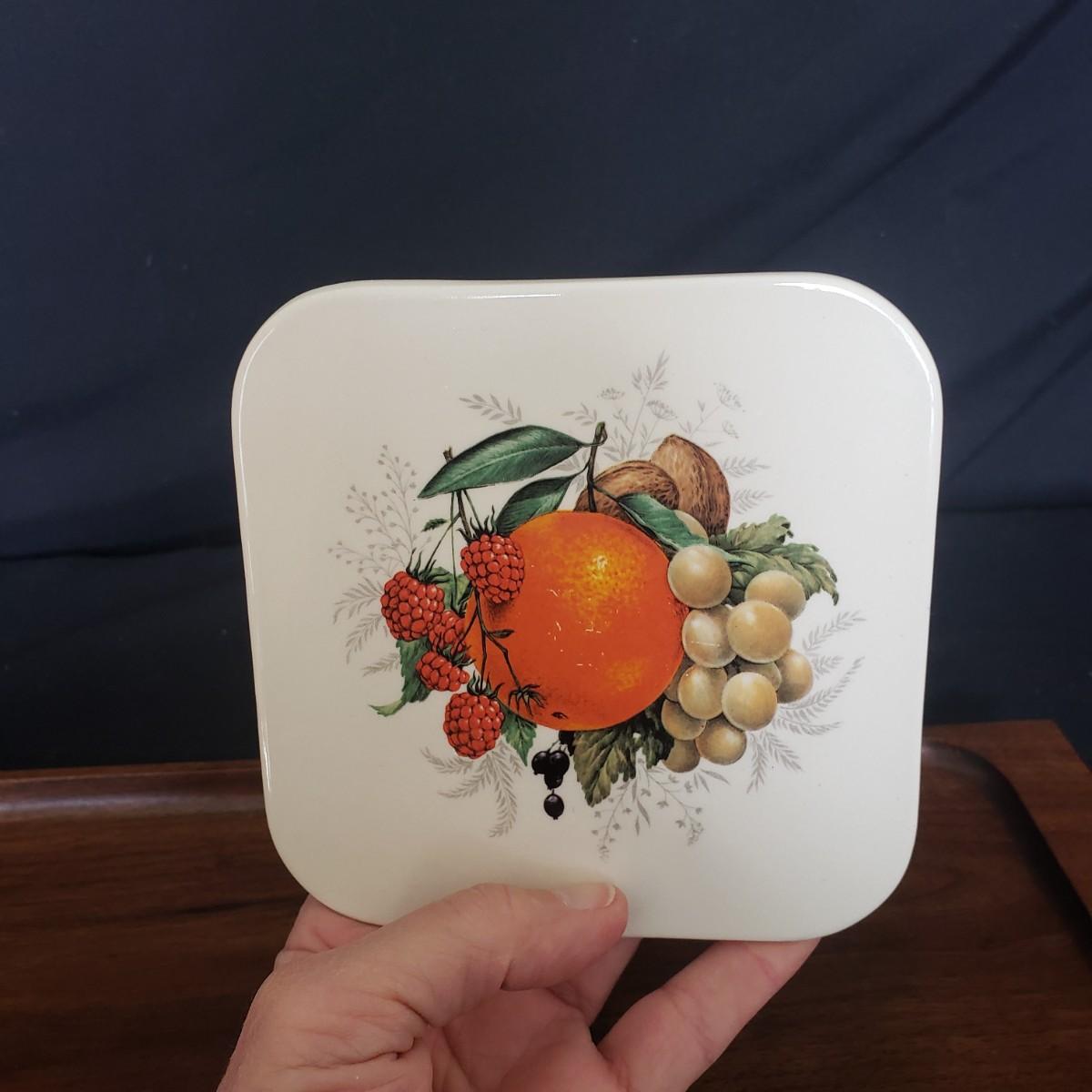 This seven-piece lot contains two enamel cookware, the red one by Dansk and the green 10-quart stock pot by Metalac. The clear cheese plate and dome measure 9"D x 6"H. The cheese plate was added later and did not make the group picture. There are two wooden canisters with plastic inserts and rubber lock lids. The wooden platter has a reversible ceramic trivet. See pictures for details. Local pick up only.
