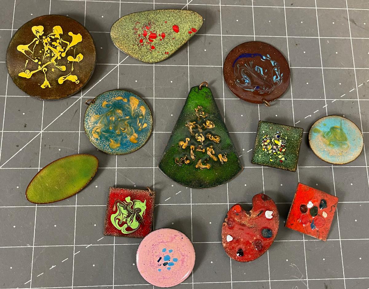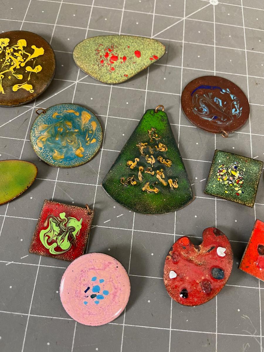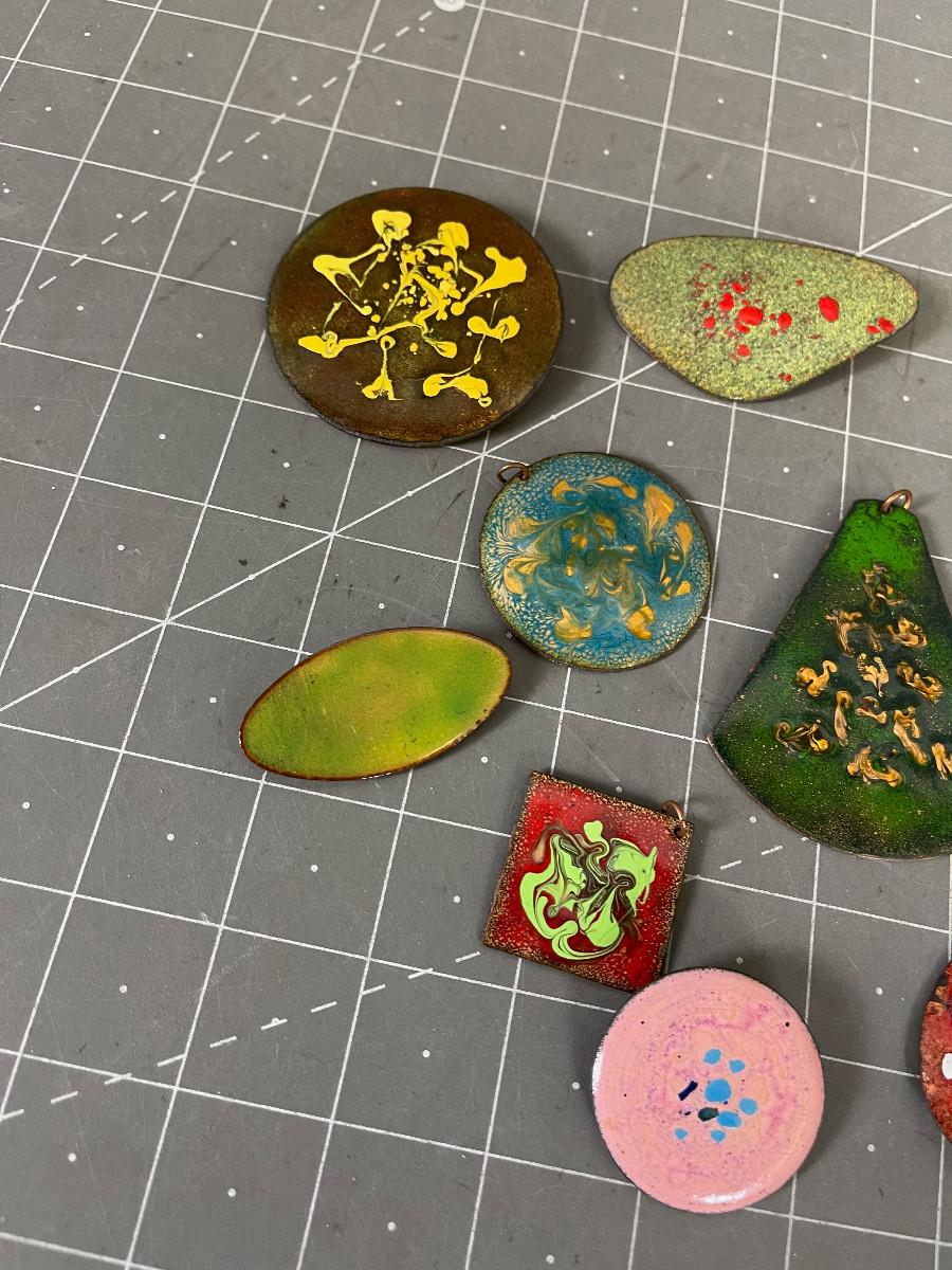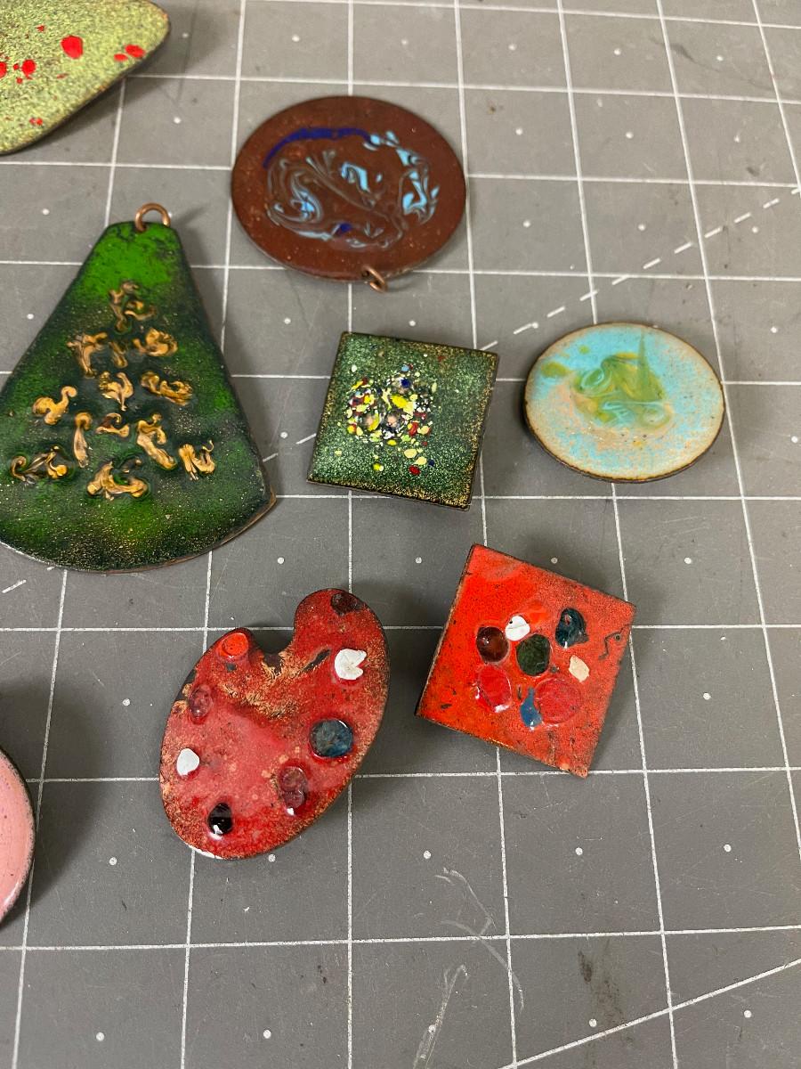 Enamel on Copper Pins and Pendants