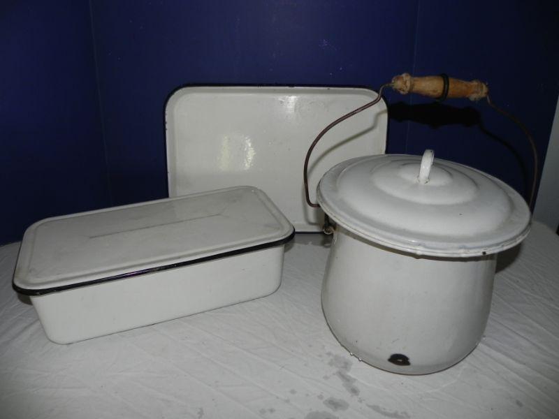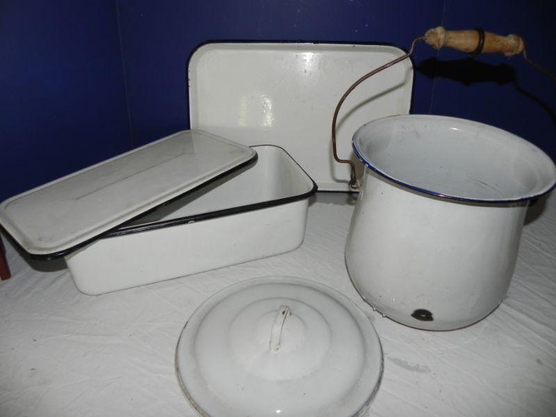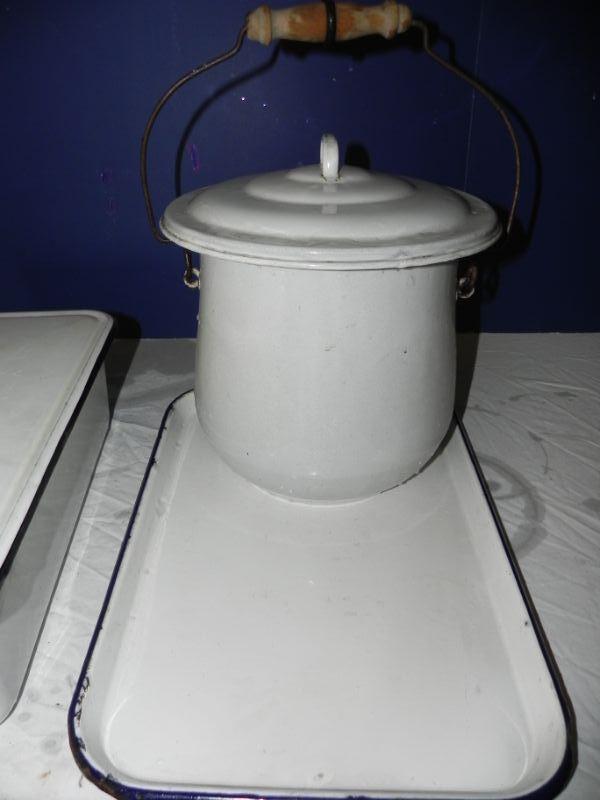 VINTAGE ENAMEL POT-PAN- & TRAY