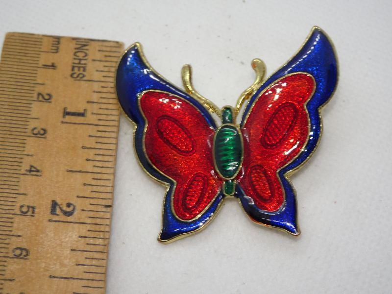 Enamel Red & Blue Butterfly Pin