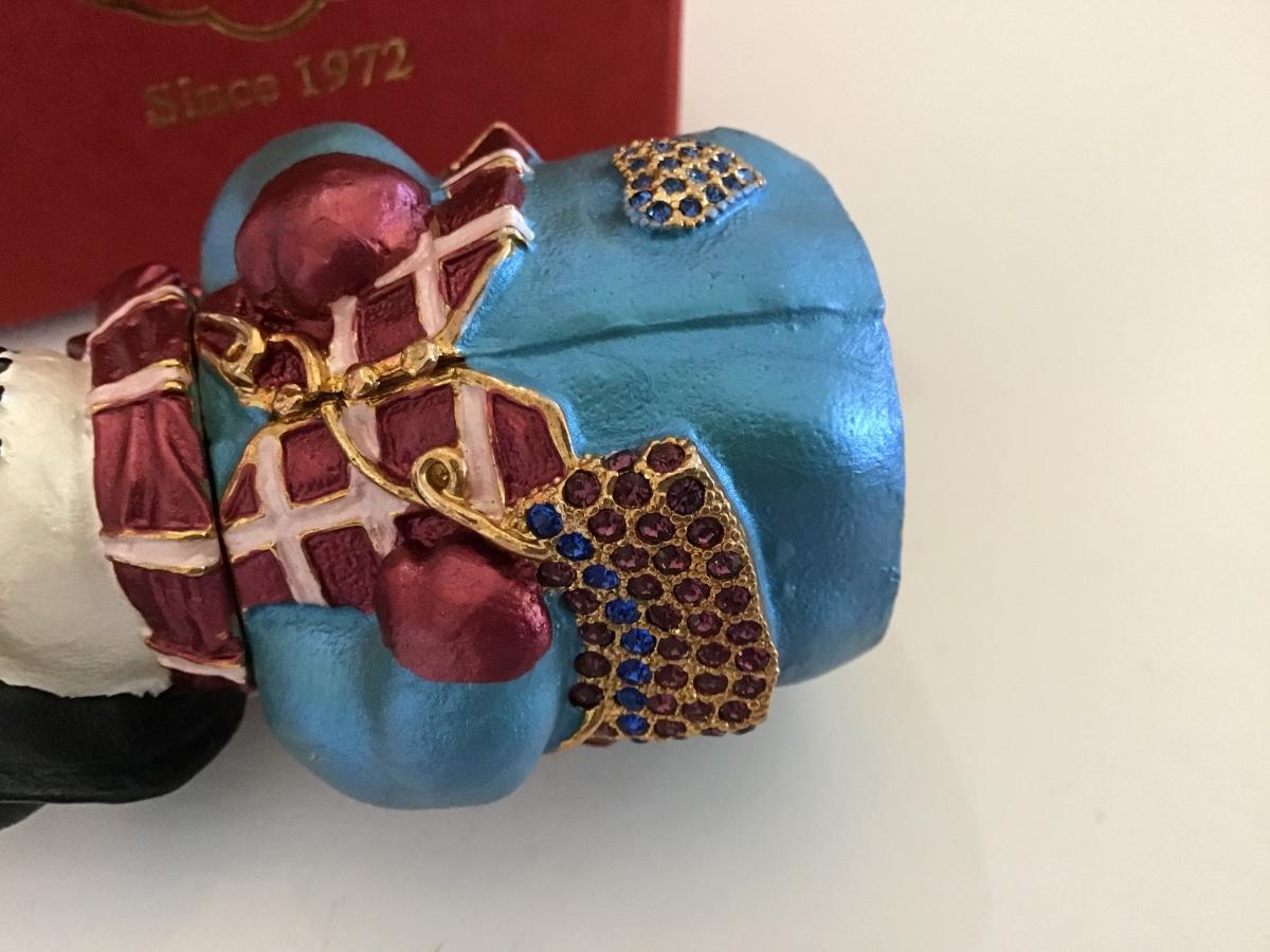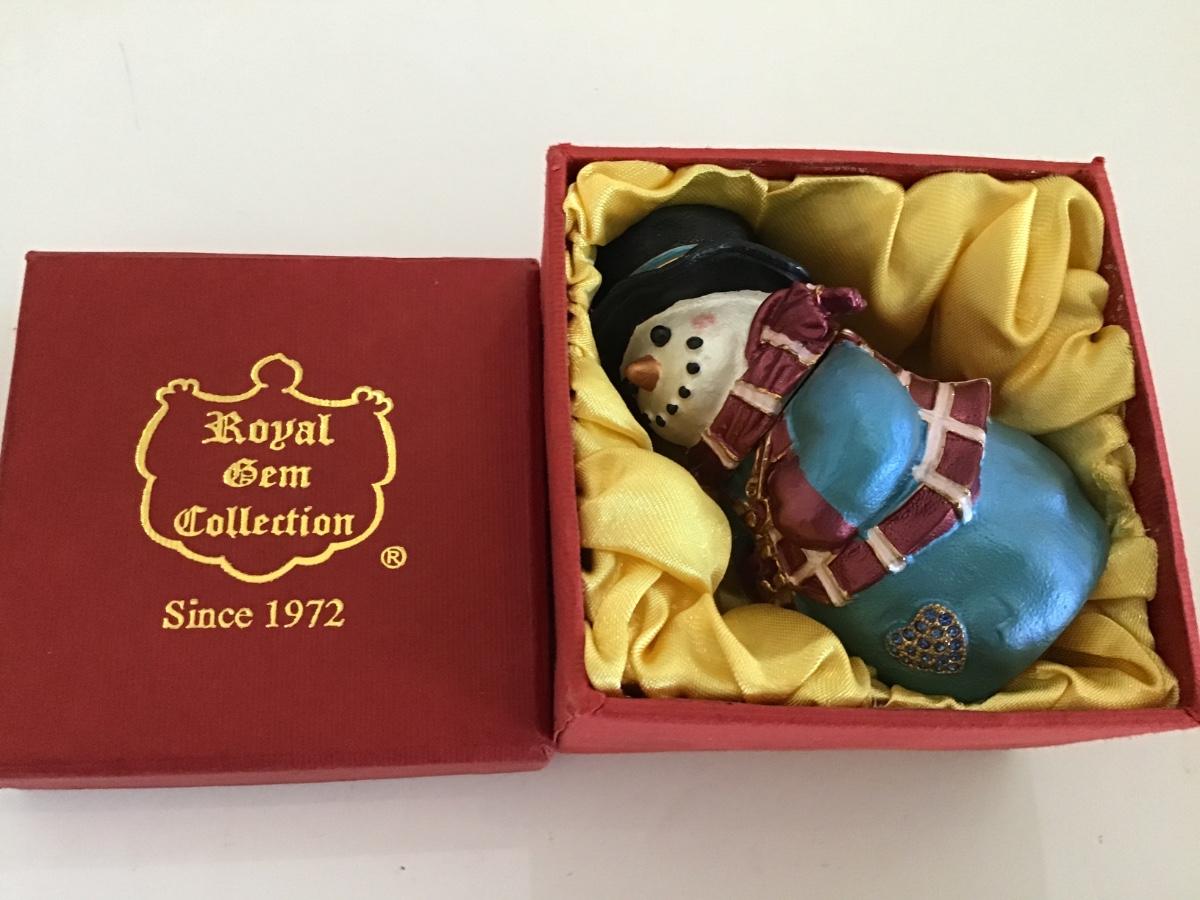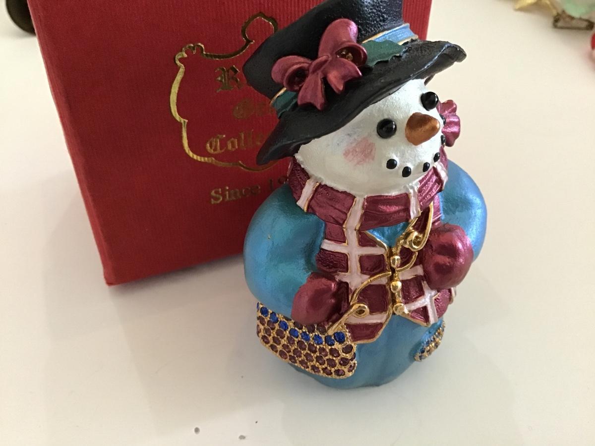 Enamel Rhinestone Trinket Box Snowman. Vintage