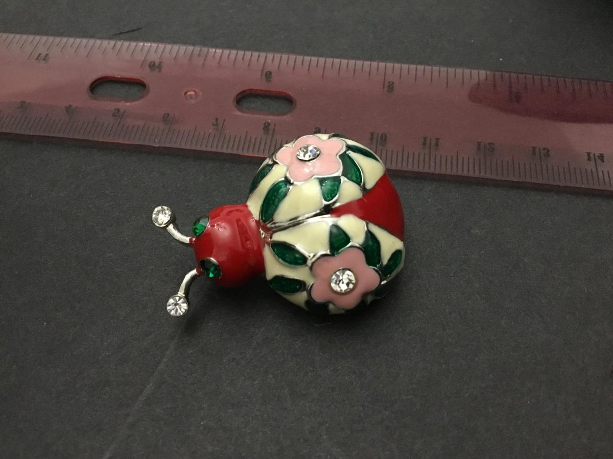 Enamel Rhinestones Lady Bug Brooch