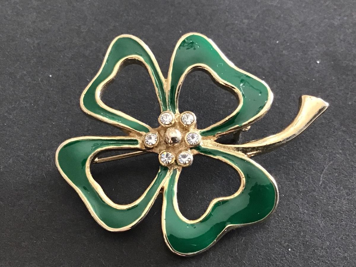 Enamel Shamrock Rhinestone Brooch