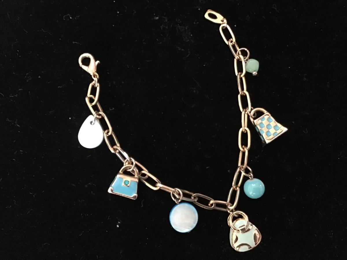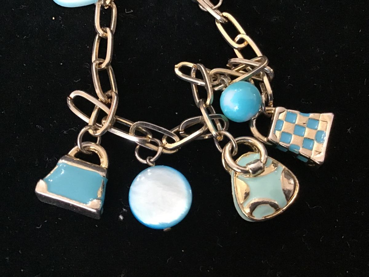 Enamel Teal Purse Charm Bracelet