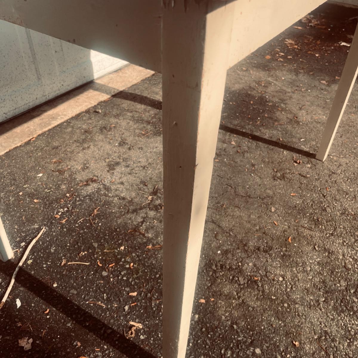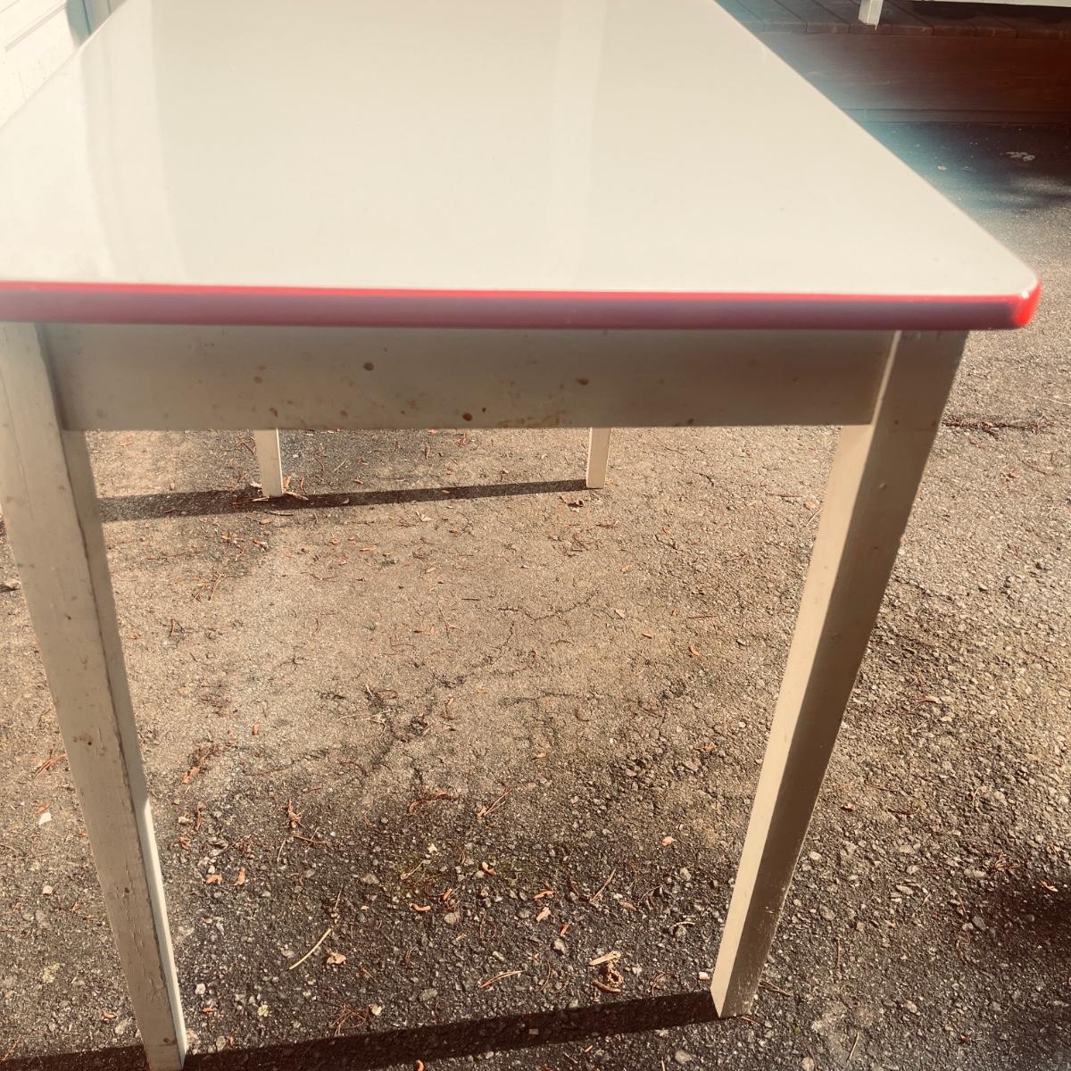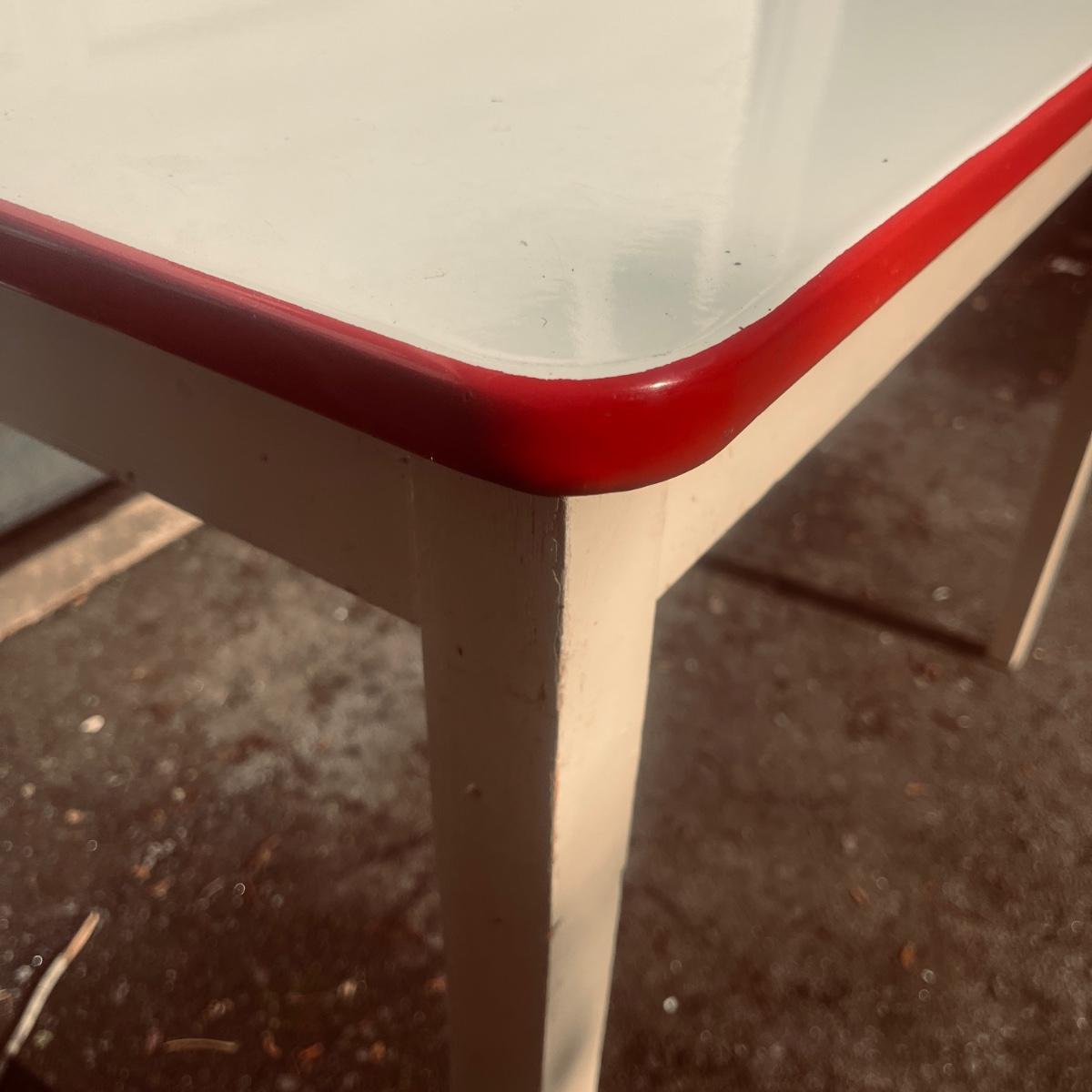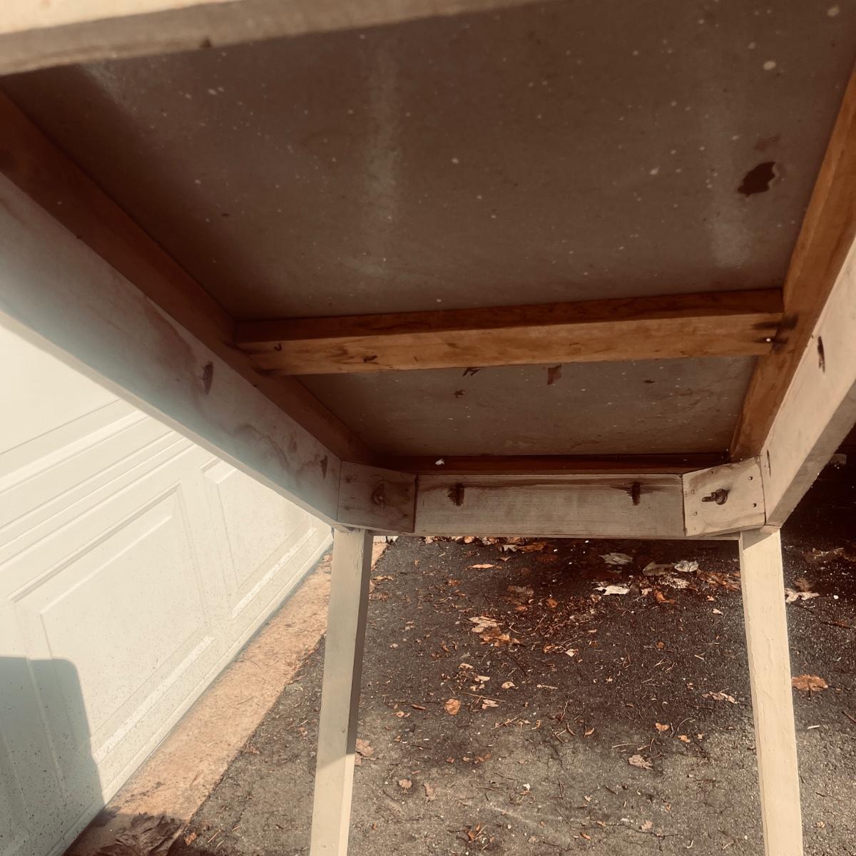 Lot includes an enamel topped kitchen table with a wood base. Table measures 40” x 25” x 30”H. Base has paint peeling and top has a few scratches, see pictures.