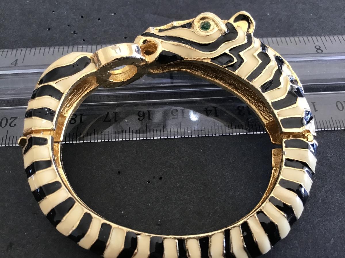 Enamel Zebra Cuff. Hinged