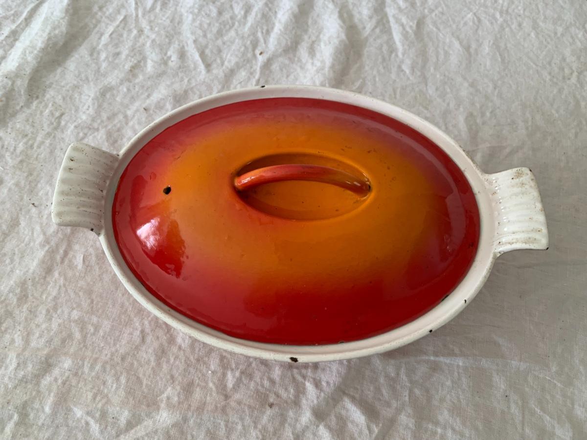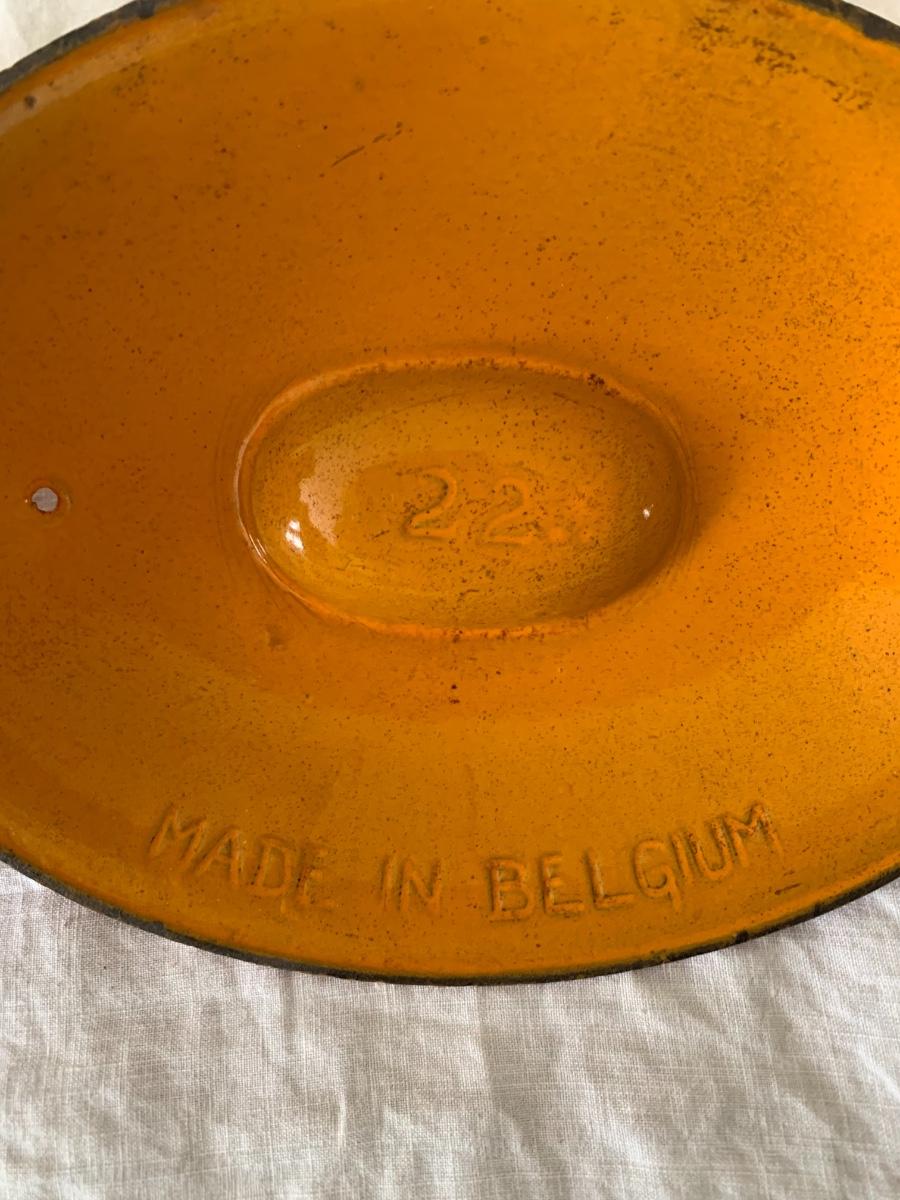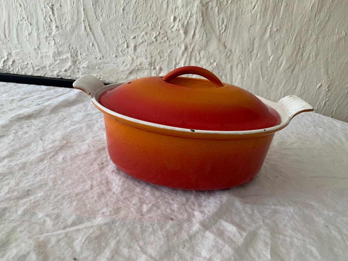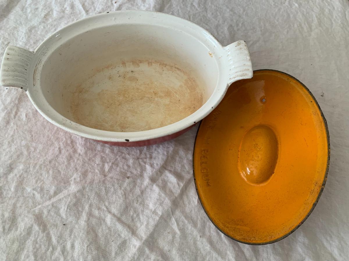 Enameled Cast Iron Casserole Dish, with lid, made in Belgium..Smaller size
