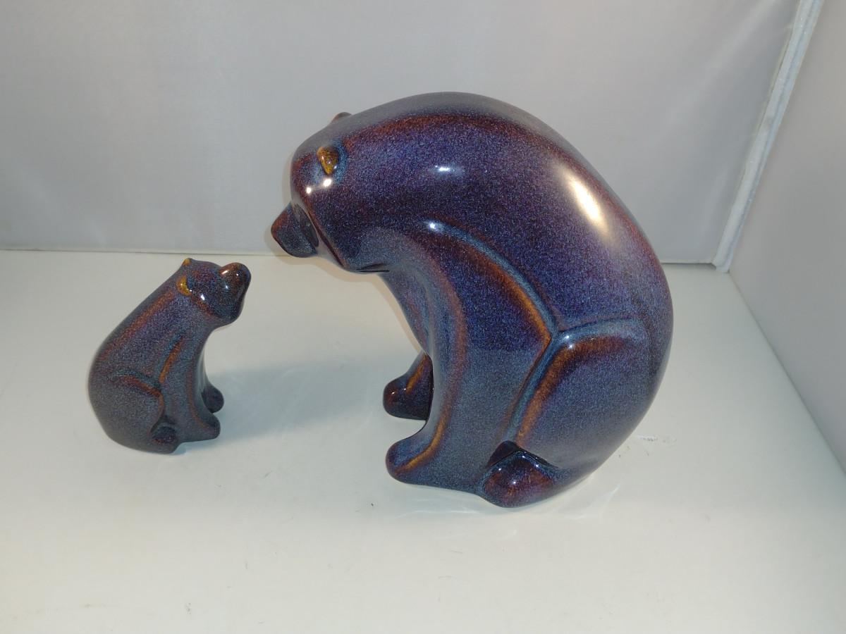 Glazed Ceramic Mama and Baby Bear Set
