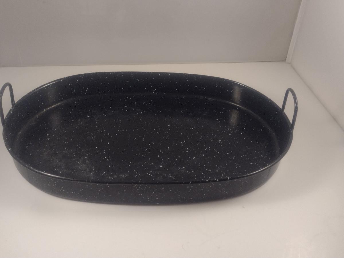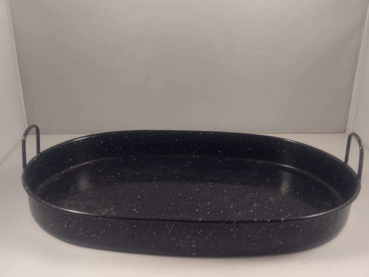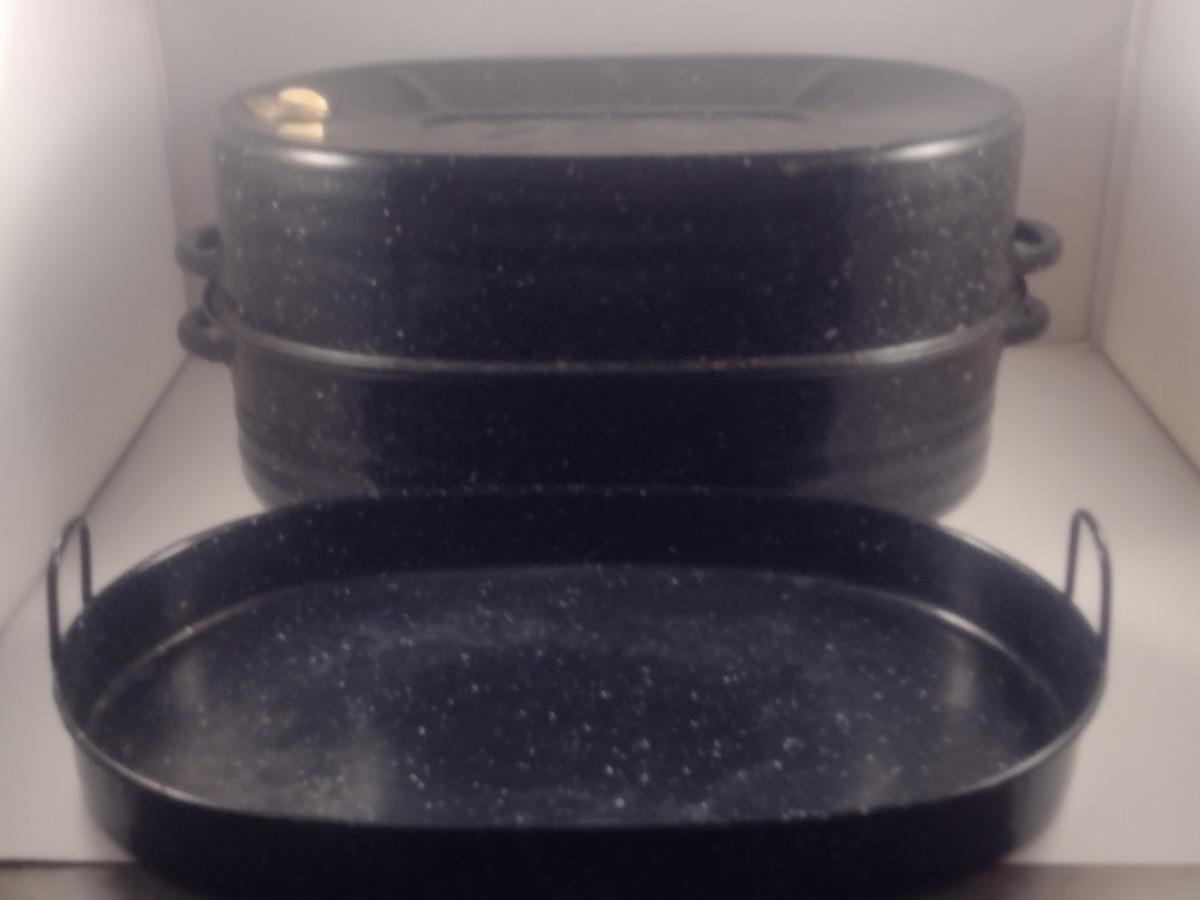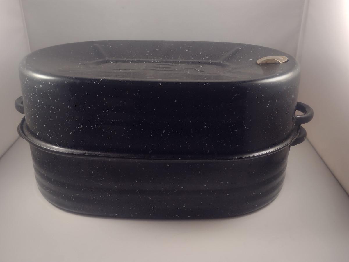 Enameled Graniteware Covered Roasting Pan. Additional pan included- see pictures please.