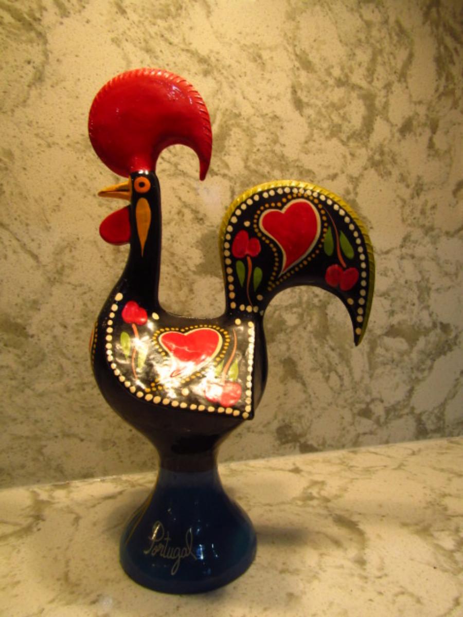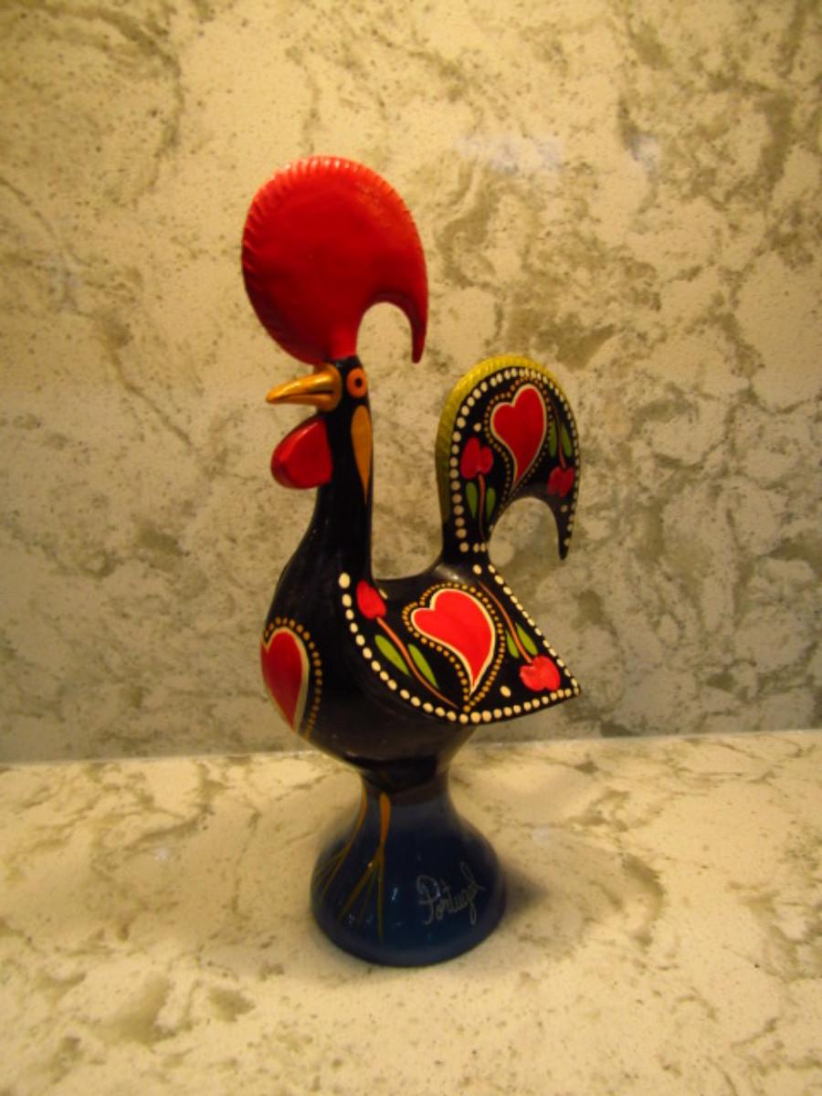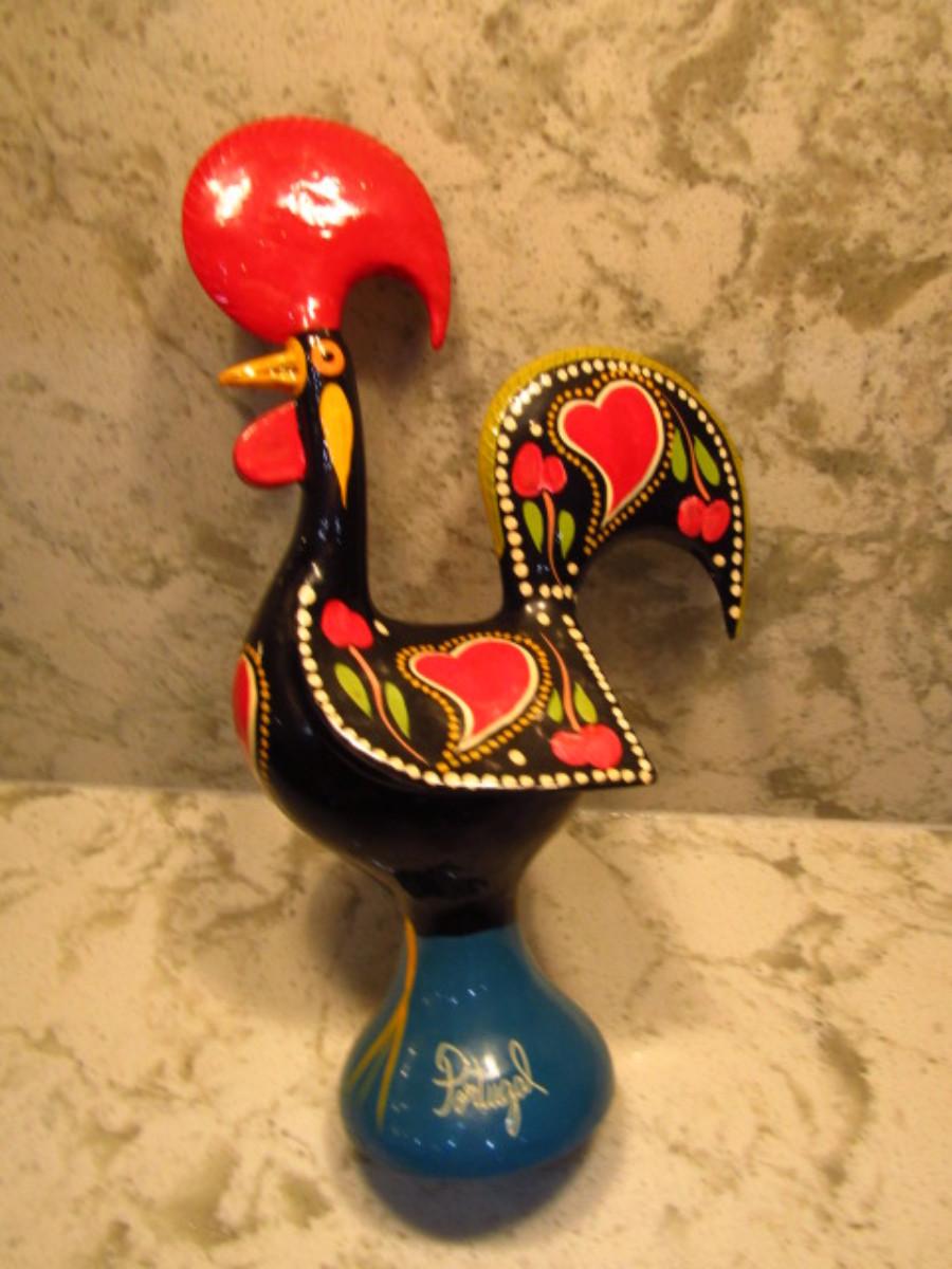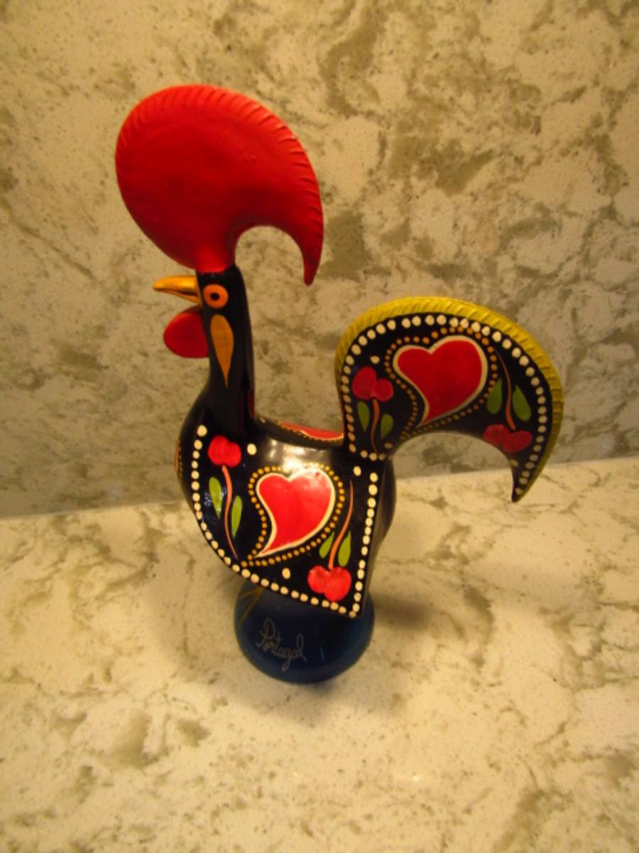 Enameled Metal Rooster (Kitchen). Approx 9 3/4" tall.