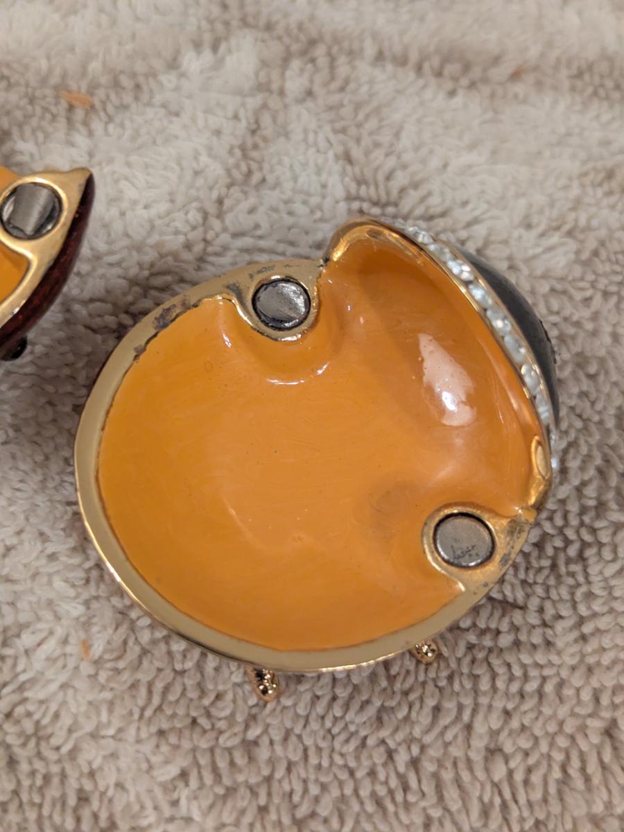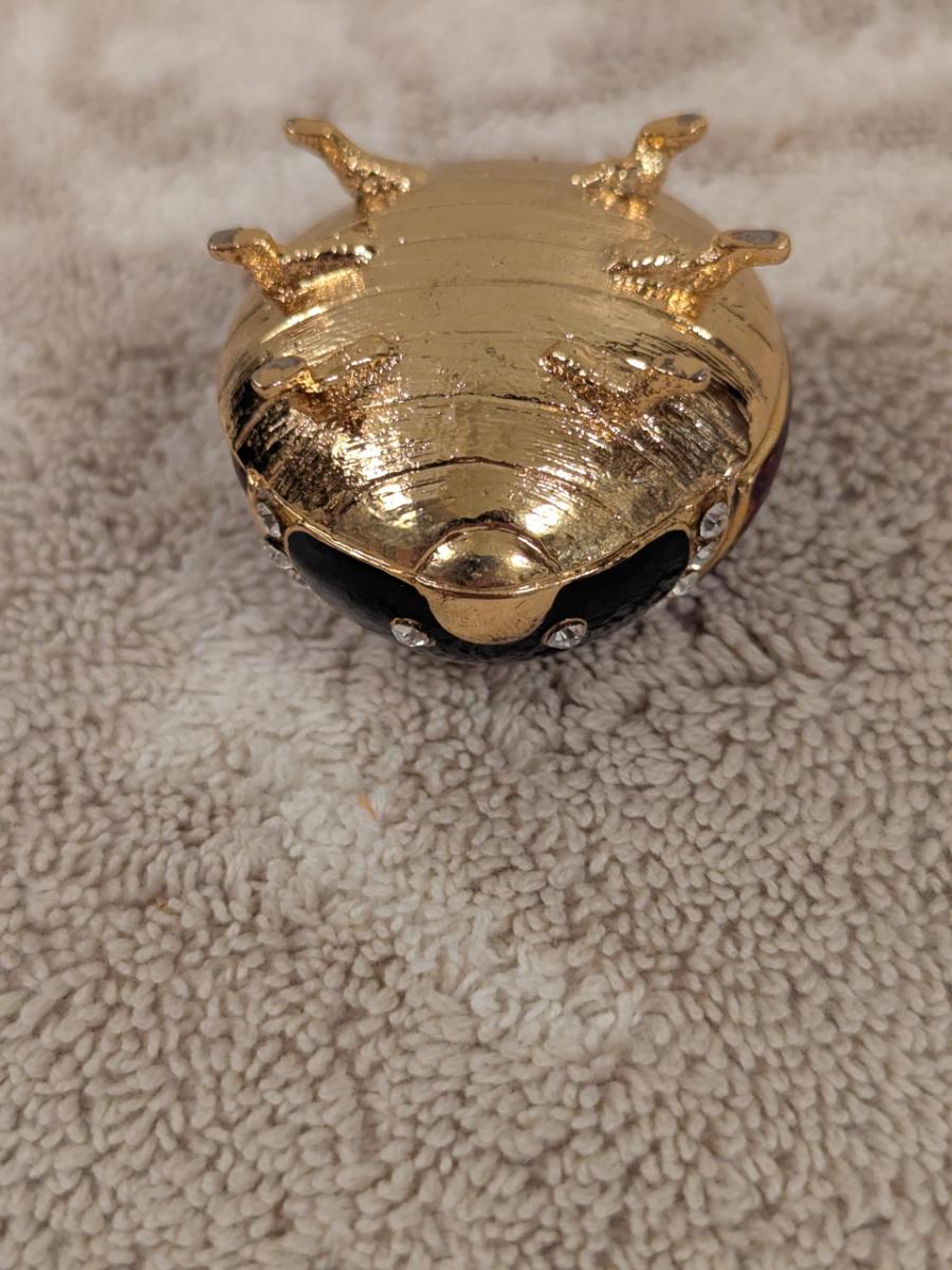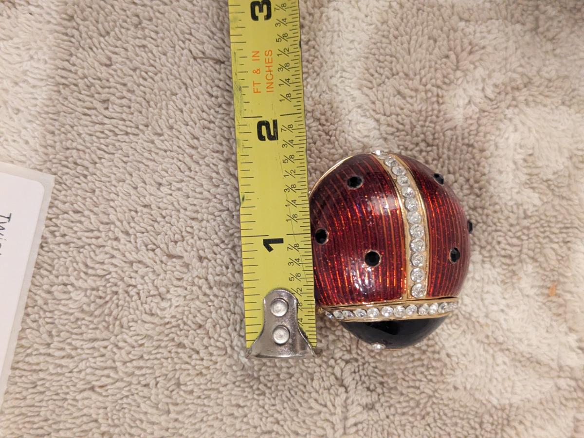 enameled pewter ladybug trinket box with rhinestone accents and storage box for it.