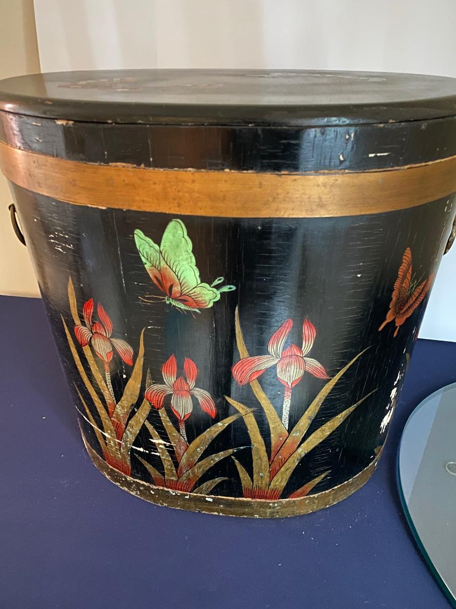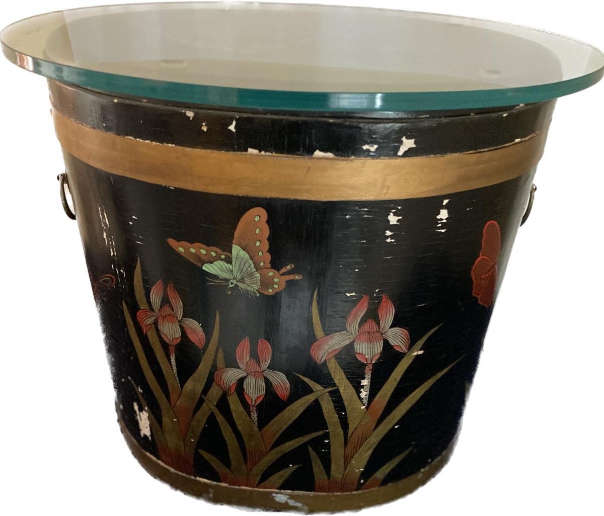 Black Enameled Wood Box End Table w/ Glass Top 21.5x18